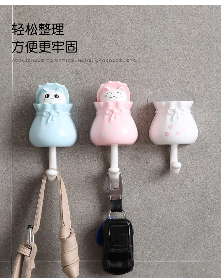 Крепкий липкий крючок Lucky Cat, держатель для ключей, настенные дв...