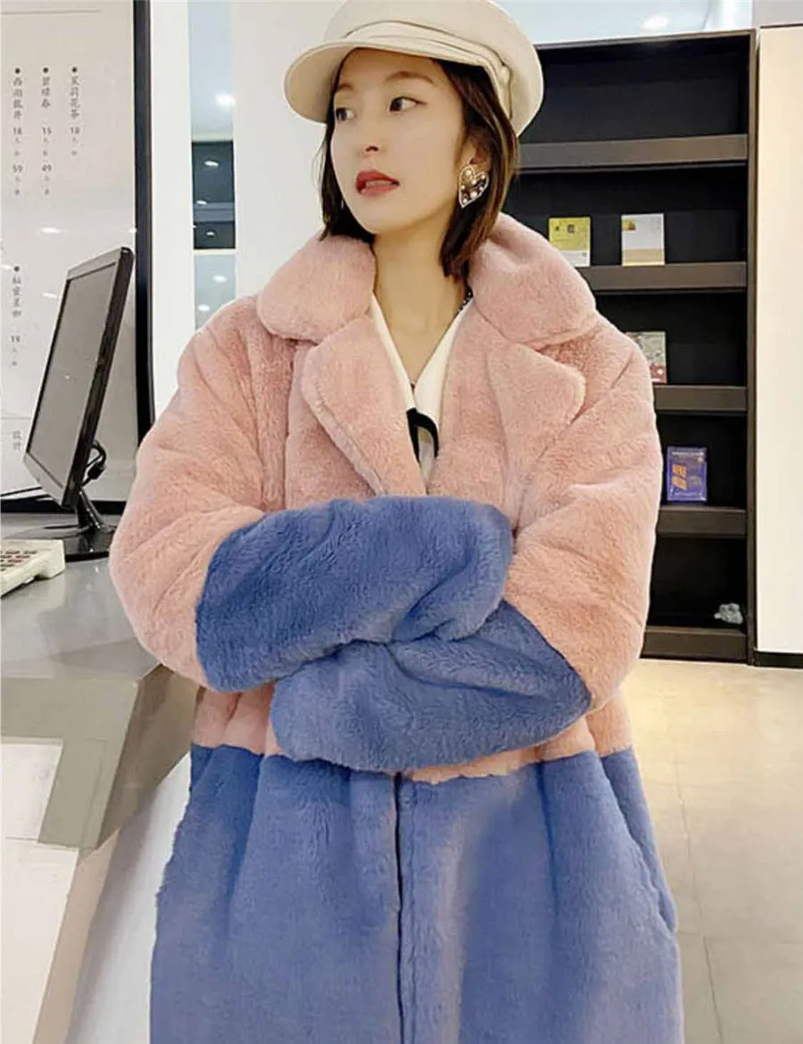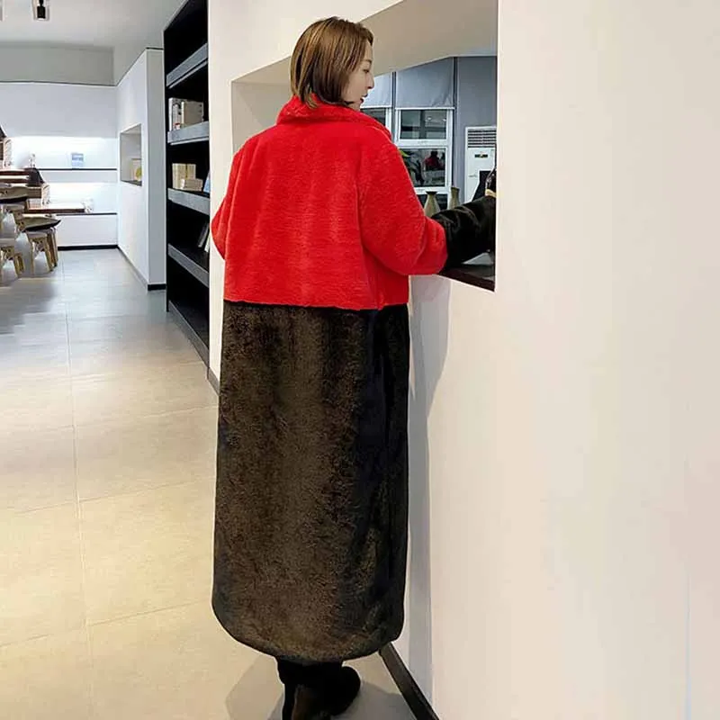 Модная зимняя женская меховая куртка 2022, Свободное длинное меховое пальто 5XL, толстые теплые женские пальто из искусственной овечьей шерсти G056
