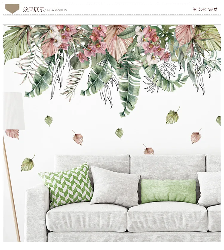 Настенные стикеры в скандинавском стиле с листьями монстера, съемные виниловые наклейки на стену, обои с растениями, обои для гостиной, спальни, Настенный декор, украшение для дома