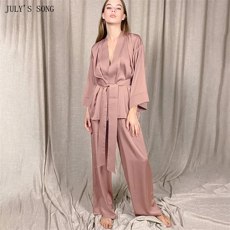 Пижамный комплект JULY'S SONG женский из 2 предметов, атласная шелковая одежда для сна, элегантная Однотонная ночная рубашка для отдыха, весна-лето