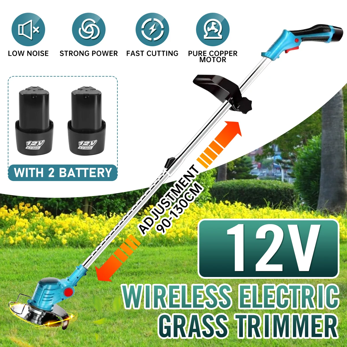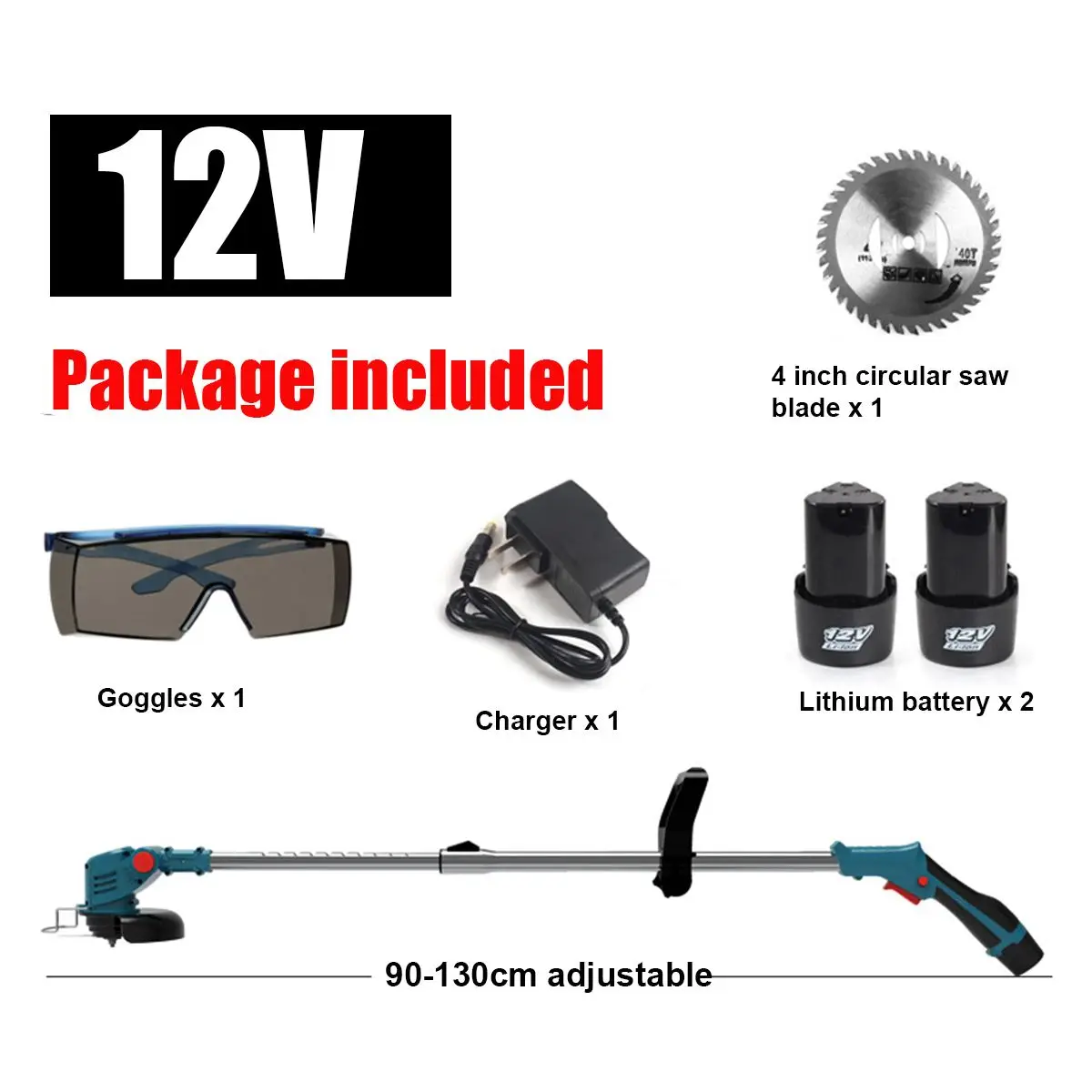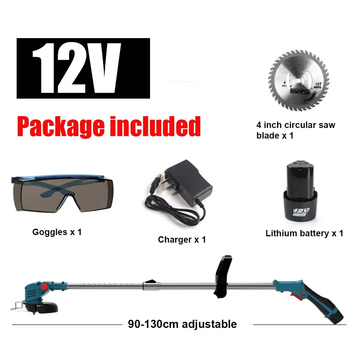 Электрическая газонокосилка, беспроводной триммер для травы и живой изгороди, 12 В, регулируемый ручной садовый инструмент с литий-ионным аккумулятором 12 шт.