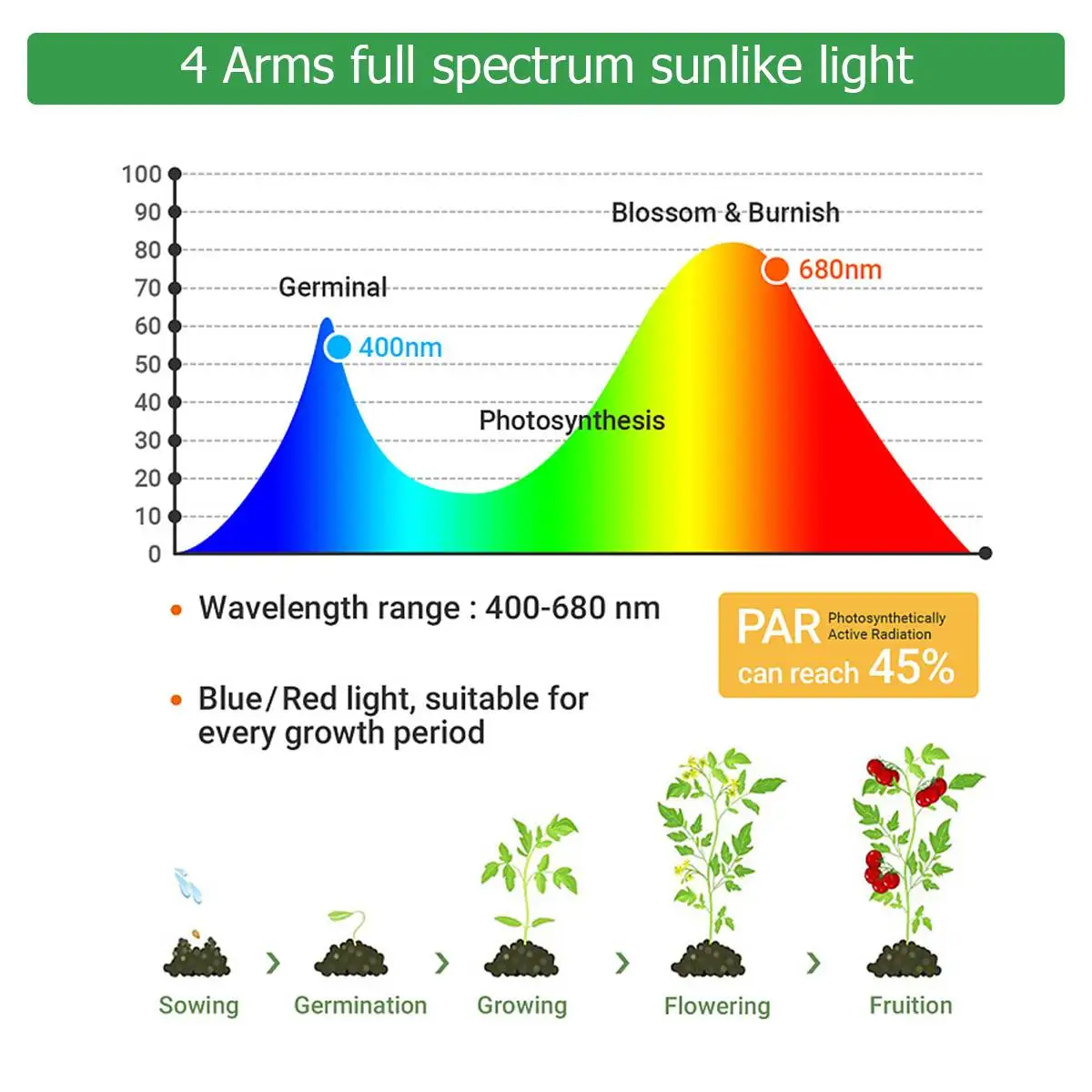 -Высокоэффективная люминесценция, более комплексное воздействие растений, богатый светильник и продвижение роста растений