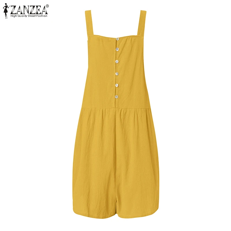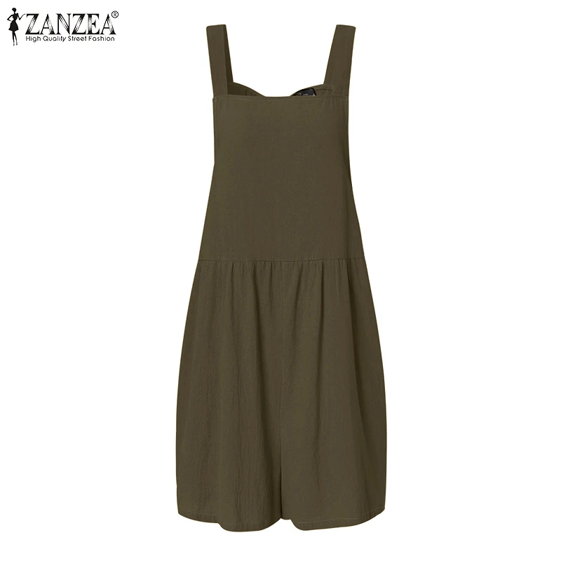 Повседневный однотонный комбинезон на бретелях, Женский однотонный комбинезон из хлопка и льна, короткий комбинезон ZANZEA без рукавов, модные мини-комбинезоны 2022