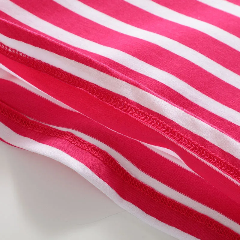 Видение Beiyuemei: пусть каждому ребенку понравится счастье и красота Информация о товареНазвание: Полосатое платье для девочек; Хлопковые платья с короткими рукавами для детей-подростков; Топы для девочек; Полосатая футболка; Спортивный костюм; От 2 до 8 летНомер товара: 6267Материал: 100% хлопокЦвет: розовый, красныйМягкий, неэластичный, умеренная толщина