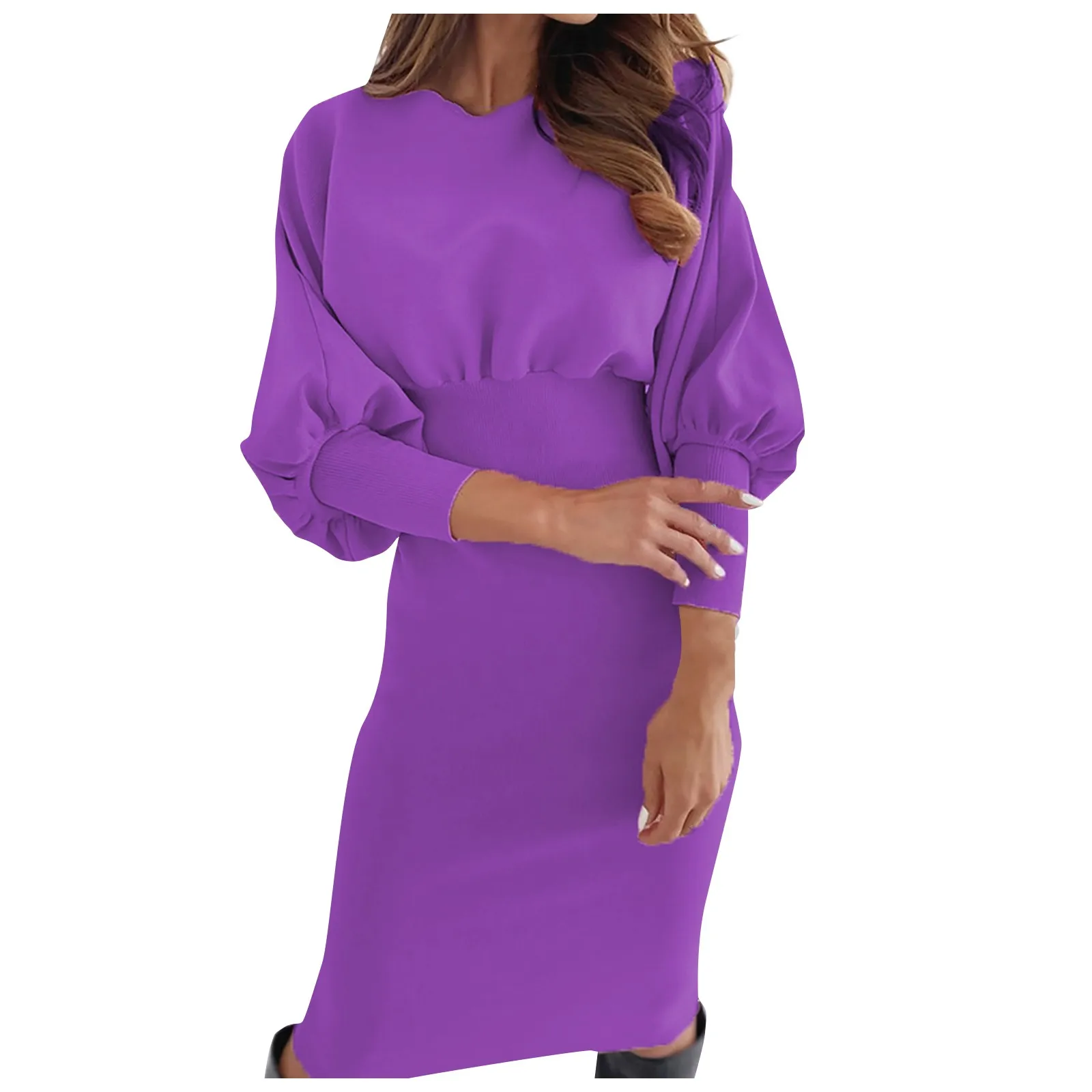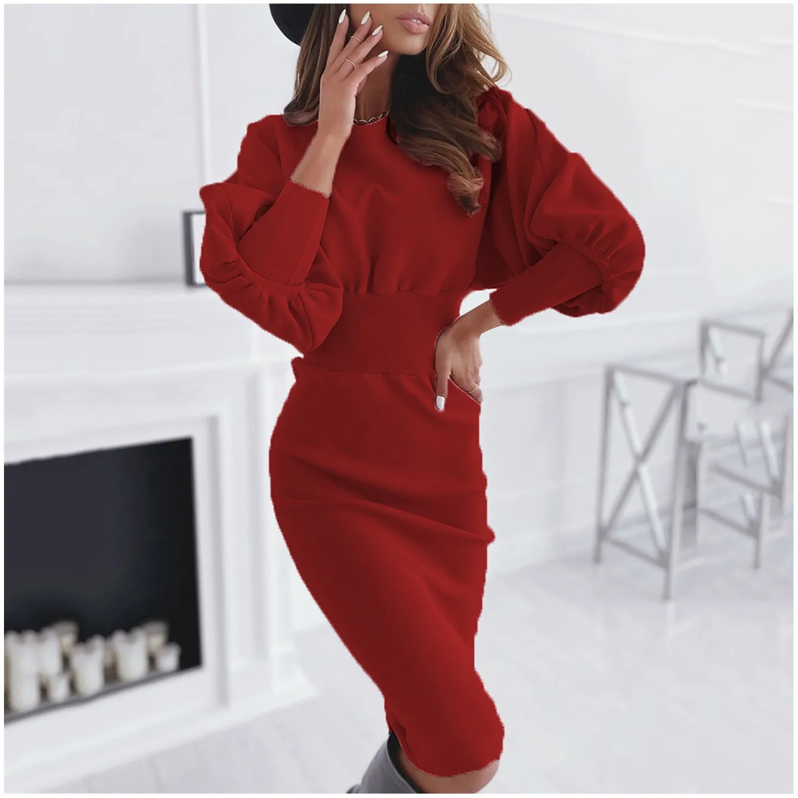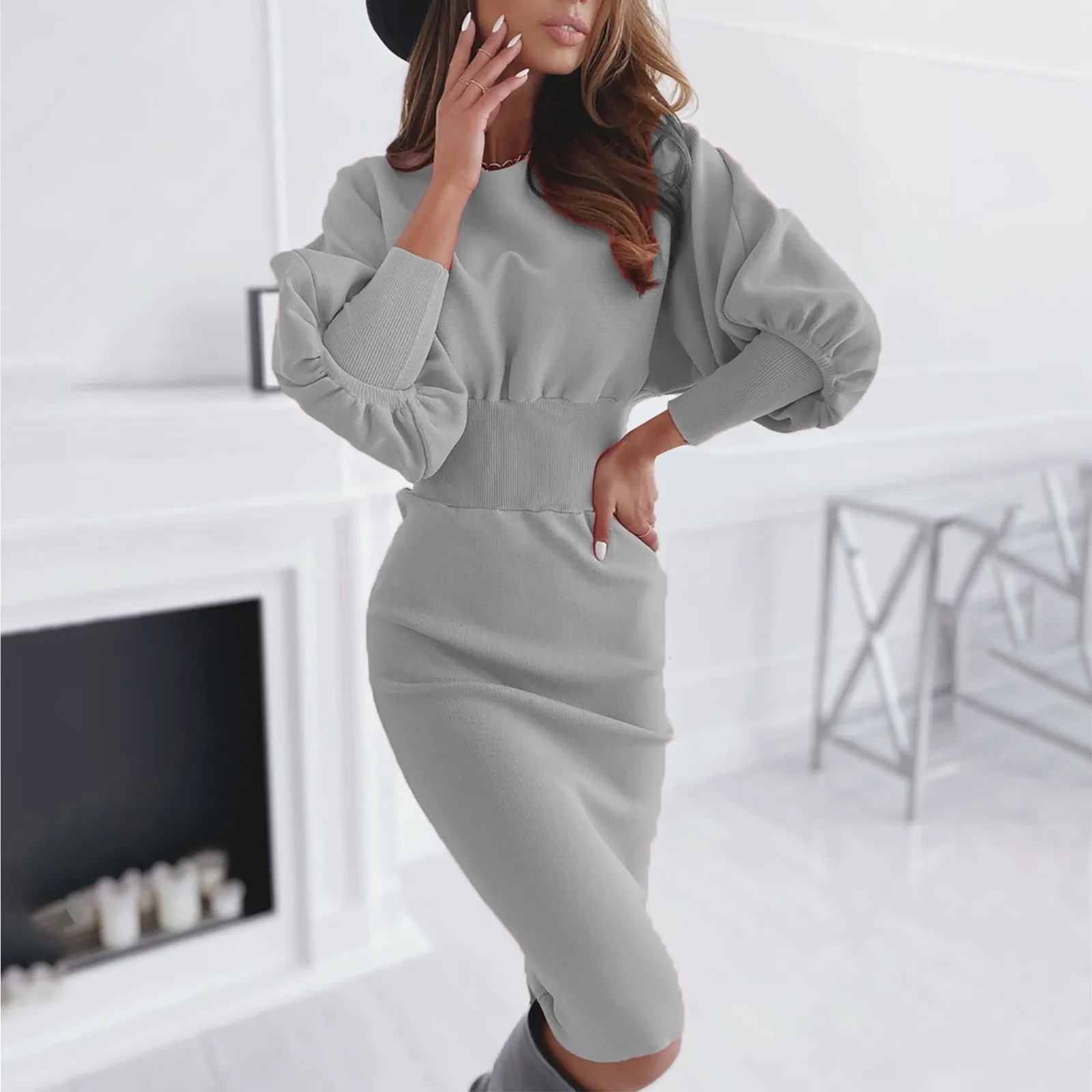 Женское платье; Зимняя теплая Повседневная талии пакет хип платье принцессы женский сплошной Цвет темперамент шею вечерние элегантное платье #35