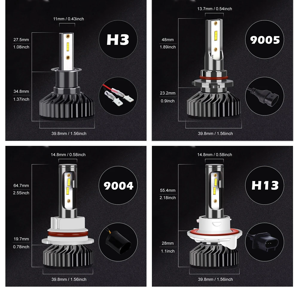 Фары головного света 3000 лм, светодиодные, с чипами CSP, 6000K, 90...