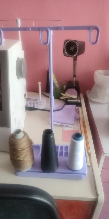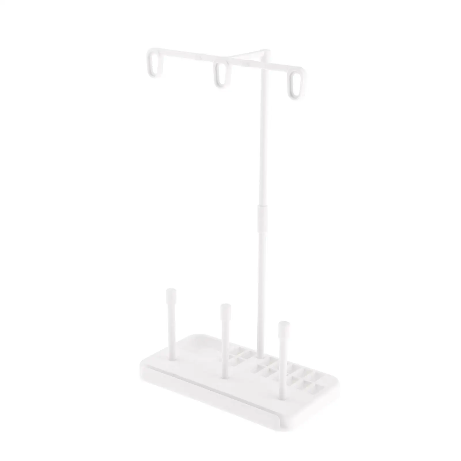 Изготовлен из высококачественного пластика, безопасный, прочный и долговечный для длительного использованияСовместим с любой домашней вышивкой и швейной машиной.3 катушки ниток стойки для хранения шитья, квилтинга, вышивки катушки или большинства мини-конусов.Легко собрать, разобрать и удобно хранить.Проволочная стойка над гавелоком может быть подвешена, что делает ваш пошив более удобным.