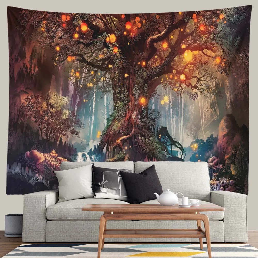 SepYue лес ковер Замок сказка психоделические красочными бабочками и бантиками; Настенный Гобелен для дома и общежития 95x73cm
