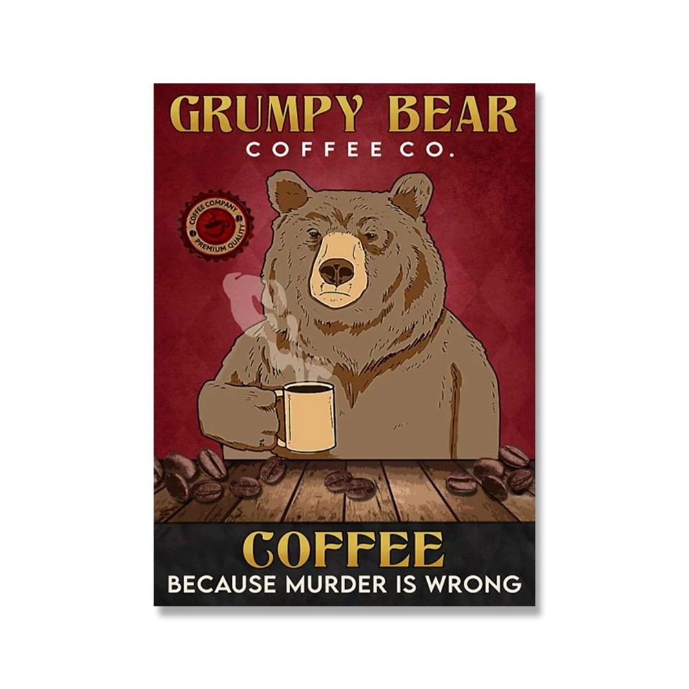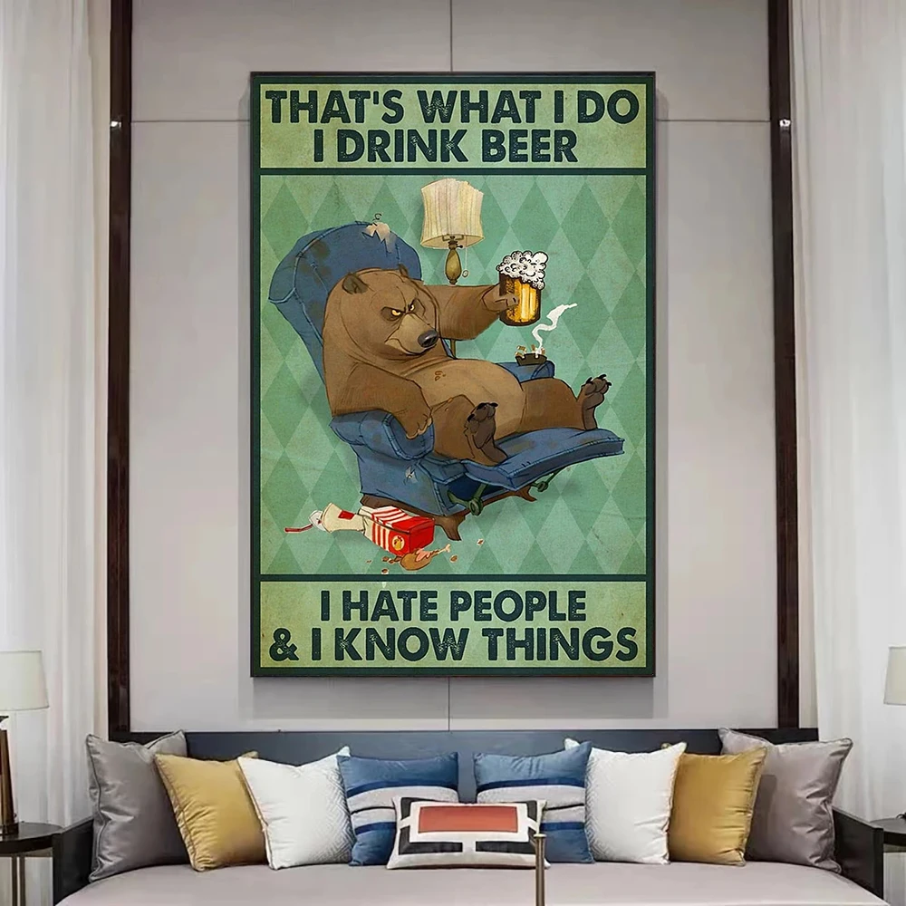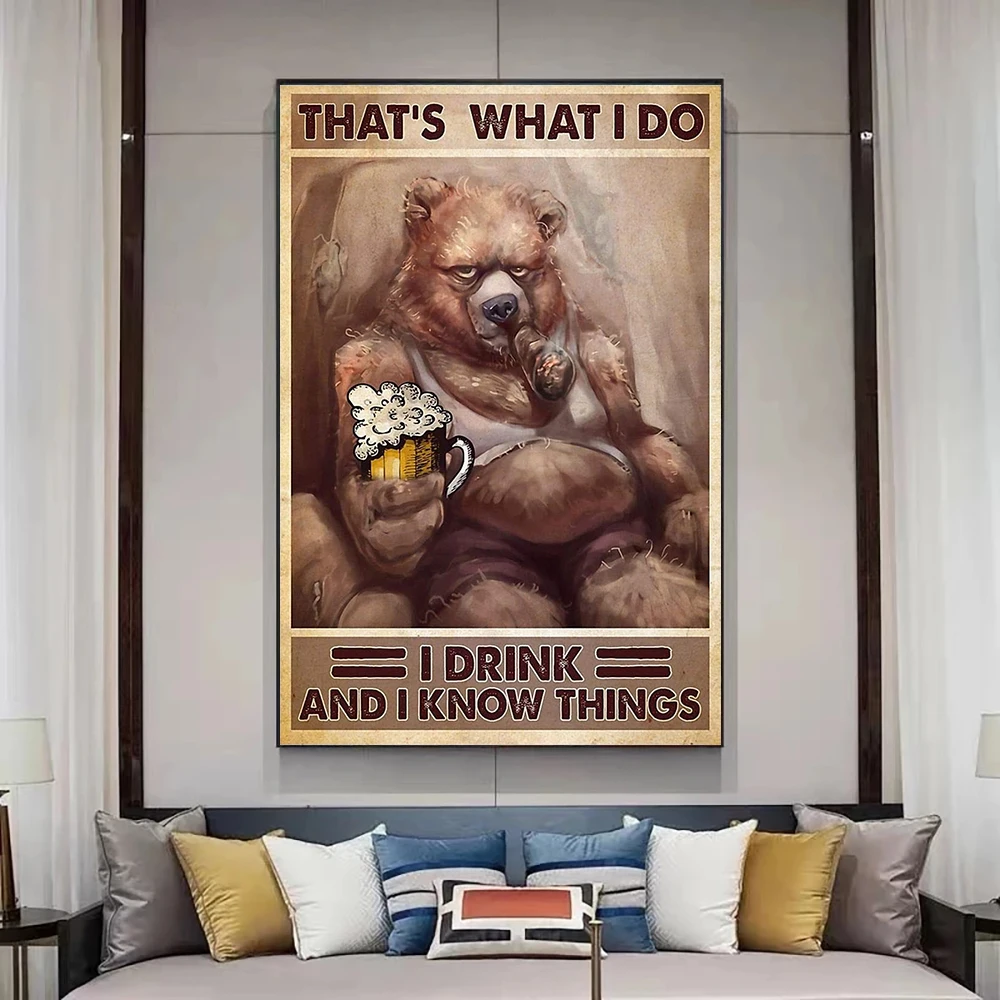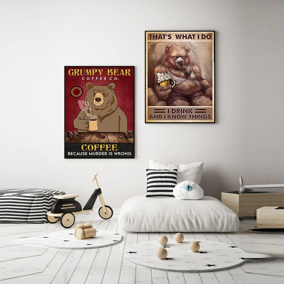 Медведь Grumpy питьевое пиво Кофе Холст плакат винтажный абстрактный настенный художественный принт картины для ванной гостиной стены домашний декор