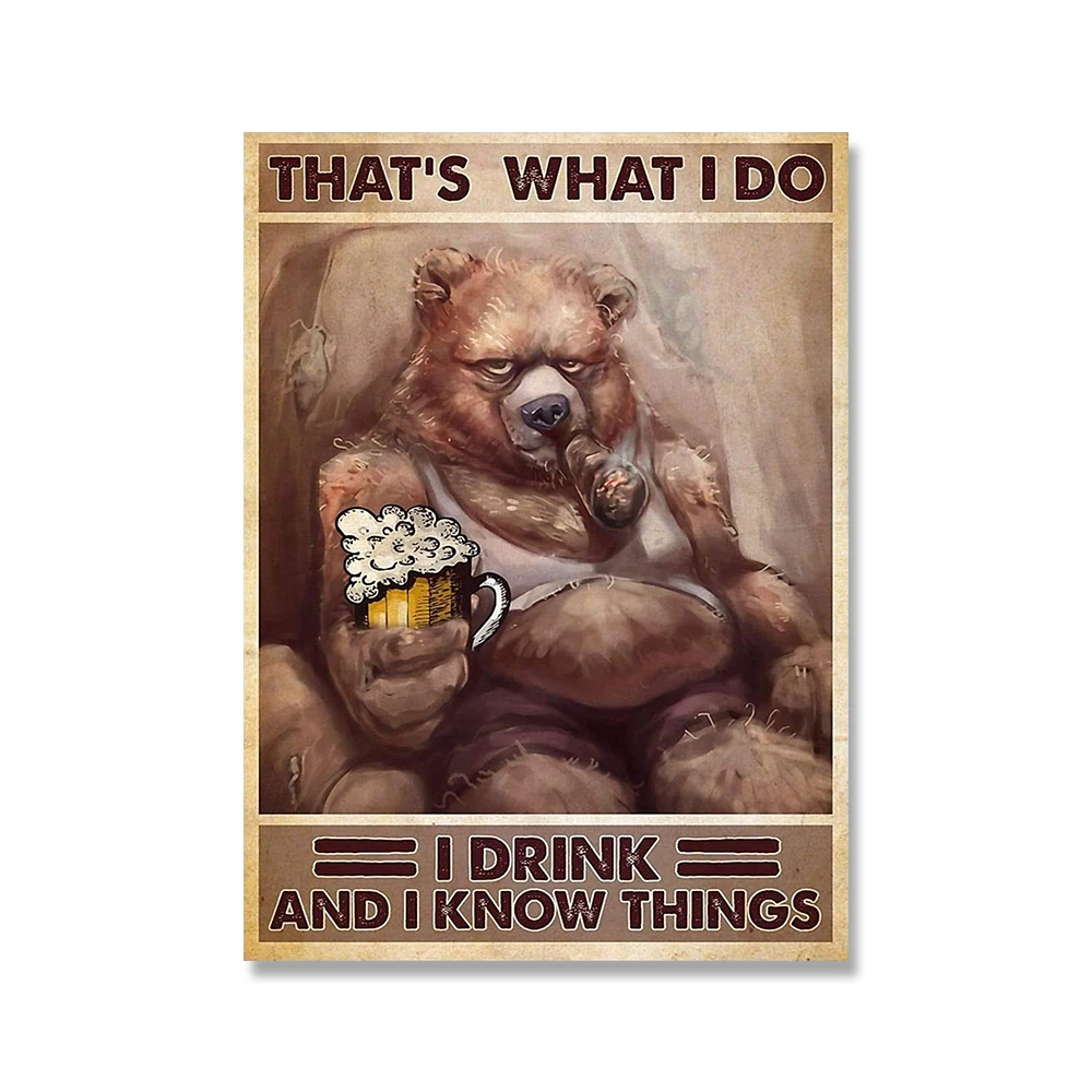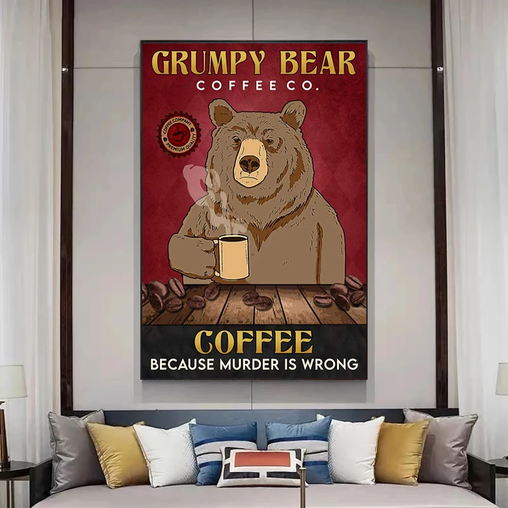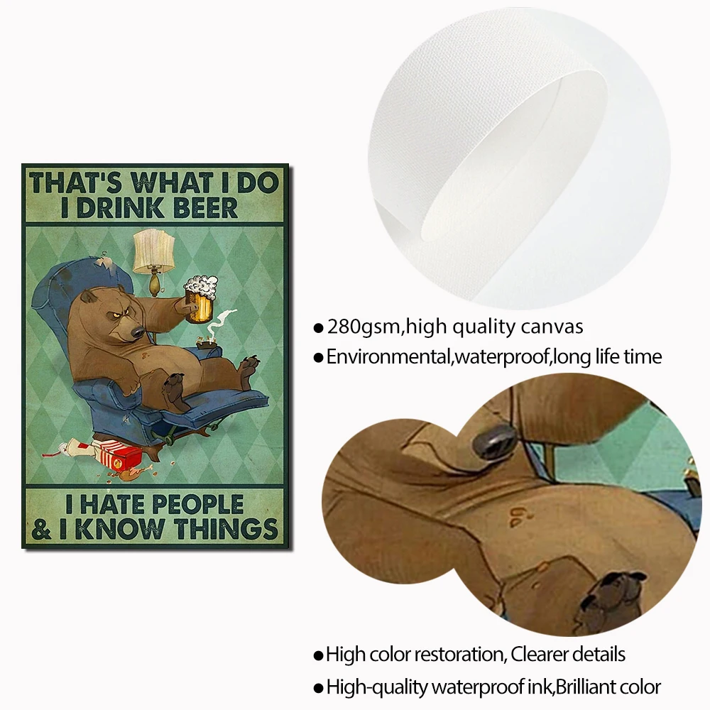 Медведь Grumpy питьевое пиво Кофе Холст плакат винтажный абстрактный настенный художественный принт картины для ванной гостиной стены домашний декор