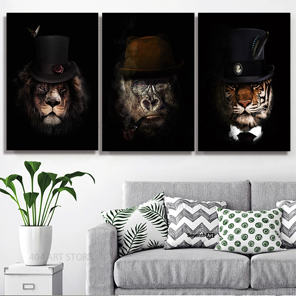 Слон в костюме, скандинавский винтажный холст, художественные плака...