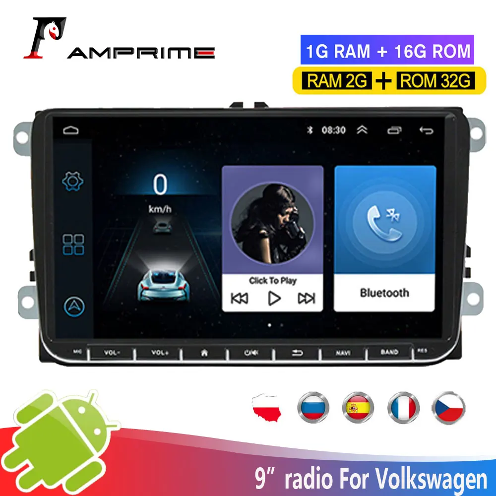 Автомобильный мультимедийный плеер AMPrime, стерео-система на Android, с GPS, для Volkswagen Passat Golf56 MK5, типоразмер 2 din