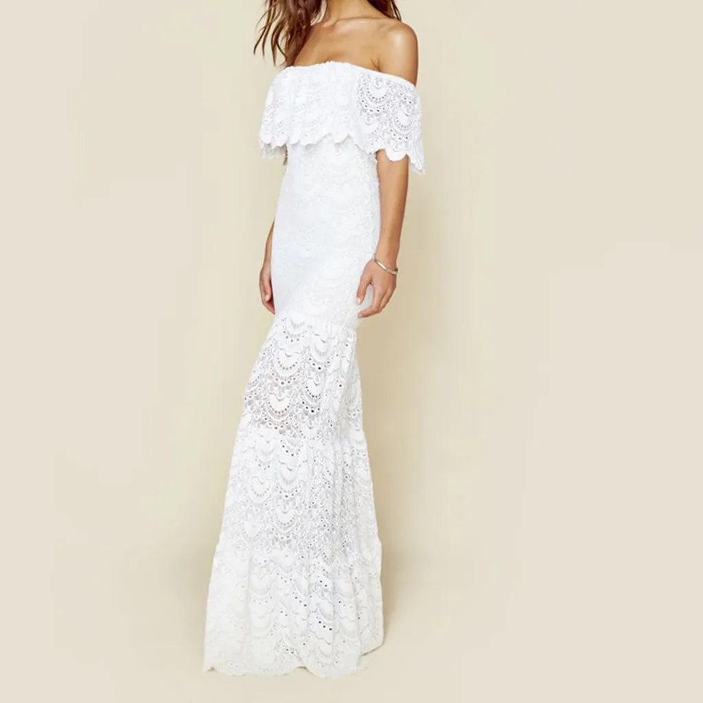 Женское кружевное платье-макси с открытыми плечами и вырезом-лодочкой