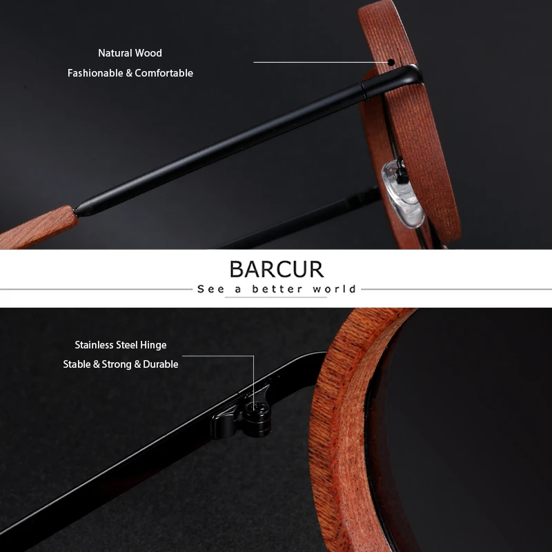 Солнцезащитные очки BARCUR, брендовые деревянные солнцезащитные очк...