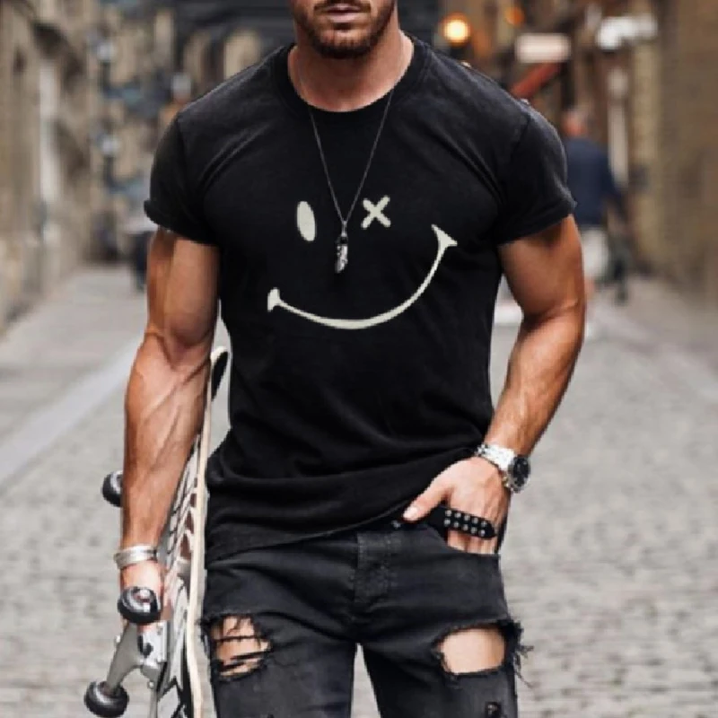 Футболка мужская с круглым вырезом, Повседневная модная свободная Базовая рубашка с простым принтом улыбки, уличная одежда, лето 2021