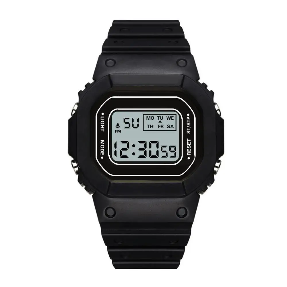 Описание категории часов: мужские, женские, мальчики, дети, Стиль часов: модный, Повседневный, Спортивный, военный циферблат: Форма циферблата: квадратный тип механизма: цифровой Тип дисплея: светодиодный ремешок: материал ремешка: силикон тип пряжки: Пряжка Длина ремешка: 240 мм Диаметр циферблата: 38 мм толщина циферблата: 10 мм Упаковка: 1 часы водонепроницаемое Описание: (водонепроницаемый для жизни) вы можете только налить немного воды. Нельзя мыть, купать, плавать или нырять.