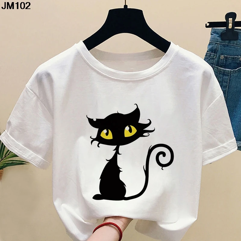 Повседневная забавная Футболка с принтом кота, летняя женская футболка в стиле Харадзюку, модные топы с коротким рукавом и графическим рисунком, женская футболка, одежда