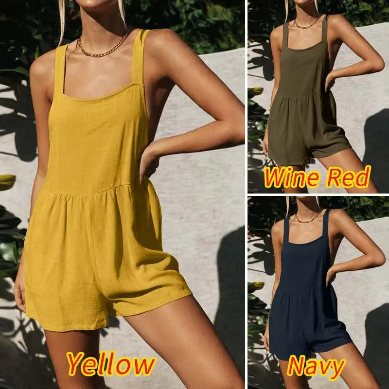 Повседневный однотонный комбинезон на бретелях, Женский однотонный ...