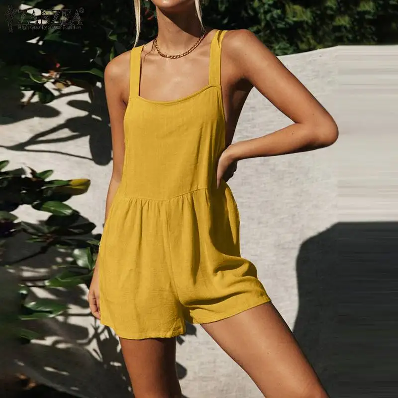 2021 модные мини-комбинезоны ZANZEA, короткий комбинезон без рукаво...