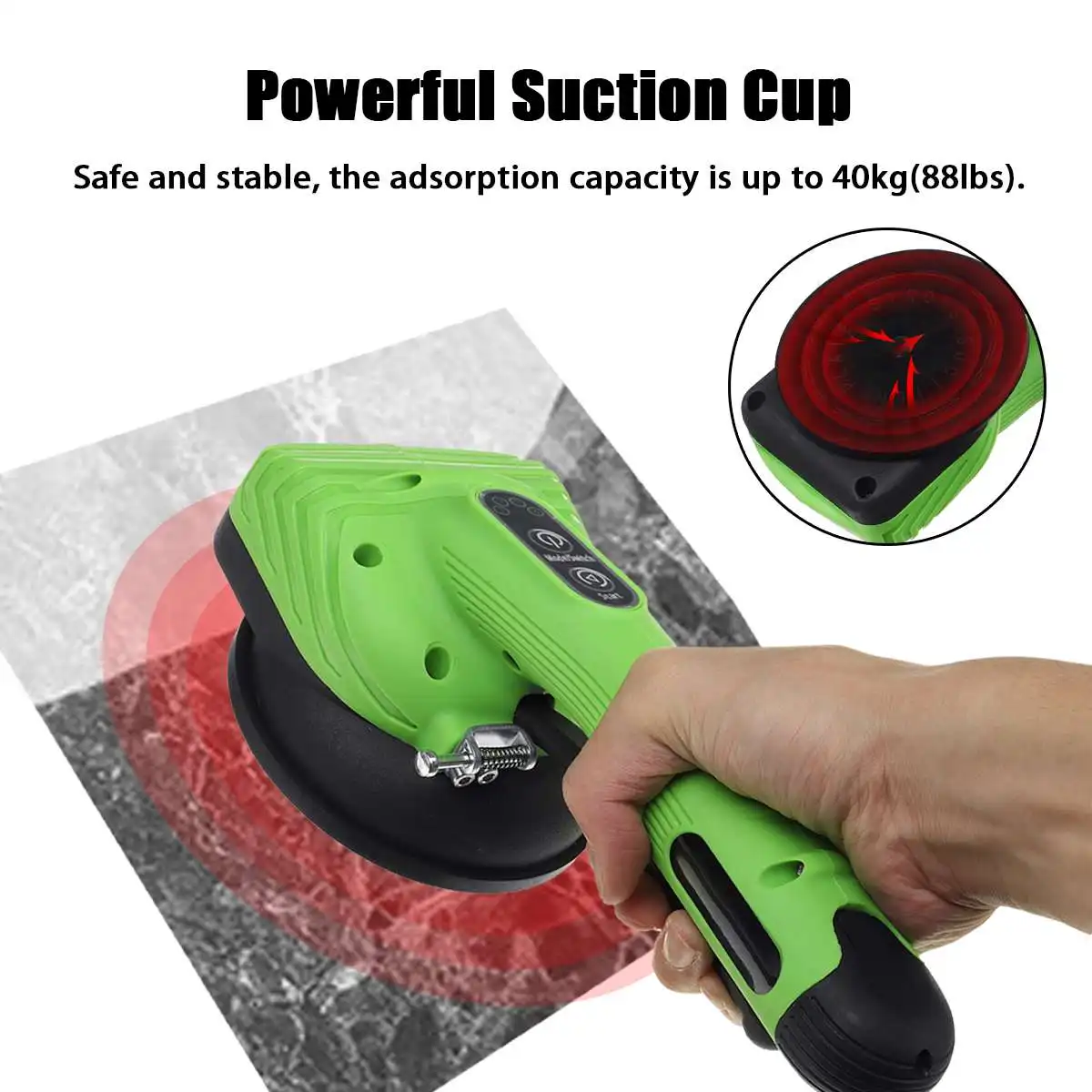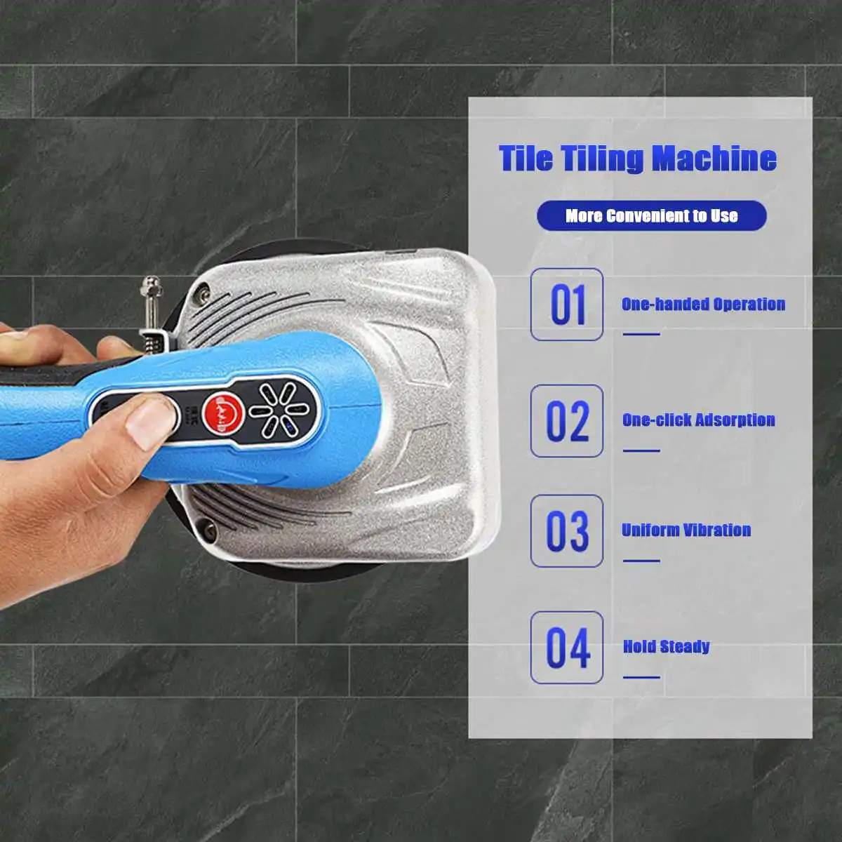 Особенности:-Скорость регулируется: одна кнопка вибрации, даже сила, может регулировать частоту вибрации в соответствии с размером кирпича.-Супер адсорбционная способность: утолщение и увеличение присоска, легко наклеивать плитку.-Кнопка блокировки: автоматически блокирует ручку, чтобы легко исправить положение плитки, удерживайте ручку, чтобы поглотить плитку и потяните ее назад, чтобы отрегулировать положение.-Управление одной рукой: стабильная и безопасная, делает вашу работу проще, подходит для инженерных команд, а также подходит для домашнего использования.-Срок службы батареи: встроенный съемный литиевый аккумулятор емкостью 3000 мАч, быстрая зарядка, длительный срок службы батареи.-Широкое Применение: подходит для движения и установки настенной плитки и небольшой напольной плитки, что значительно повышает эффективность работы.-Портативный и удобный: Он имеет прочную внешнюю упаковочную коробку, которая содержит плитку, зарядное устройство.