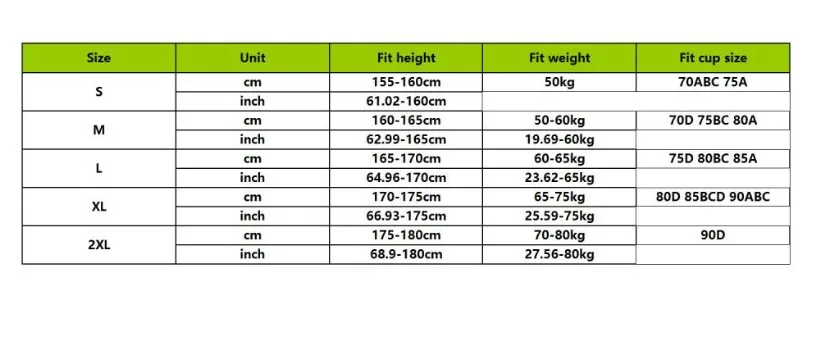 Примечание: При ручном измерении допускается погрешность в 1-3 смЦвет: розовый, черный, хаки, светло-голубойМатериал: нейлонПосылка включает в себя: бюстгальтерИнструкции по уходу: рекомендуется ручная стирка
