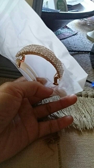 Быстрая доставка и очень красивая заколка, очень блестит, выглядит дорого! Единственное что, немного странный механизм у заколки внутри, отличается от наших стандартных, где просто вставка была для малого объёма волос, а при желании можно ее вынуть и заколоть большой объем волос. Заколка узкая, но глубокая, чтобы засунуть все волосы, надо широко раскрыть, но механизм единый уголком и полностью она не открывается, приходится через узкое пространство засовывать все волосы. Принаровиться можно. Зато вся моя копна волос влезла, что удивительно. Если заколоть сверху только часть волос, то механизм держать не будет.