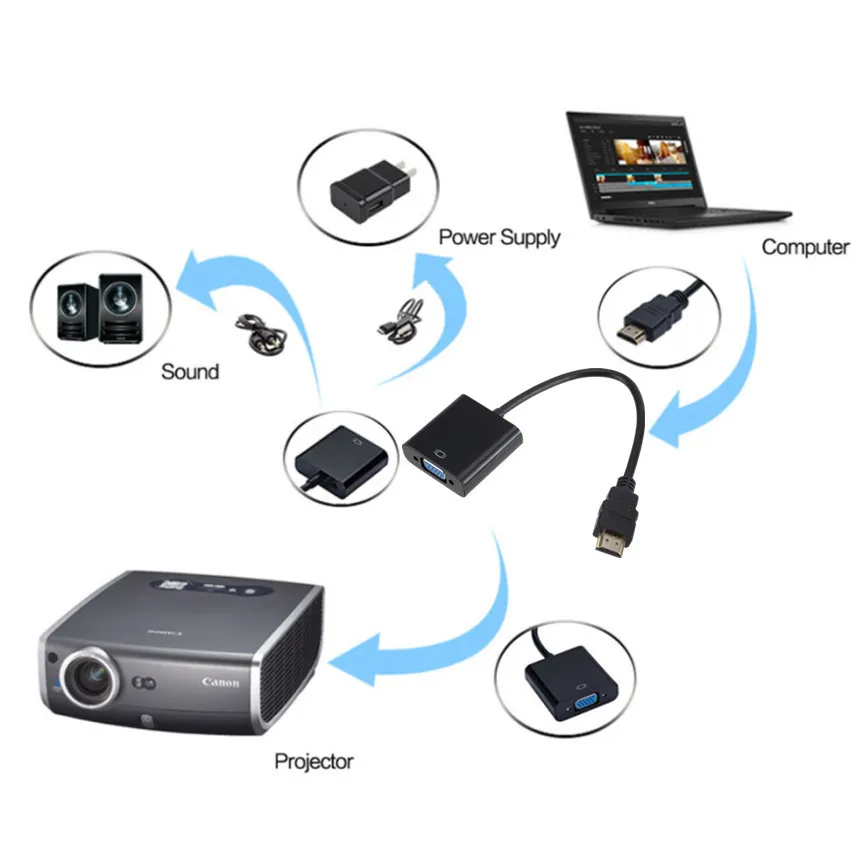 Адаптер 1080P HDMI-совместимый с VGA, Кабель-адаптер для Xbox, PS4, ПК, ноутбука, ТВ-приставки, проектора, HD TV