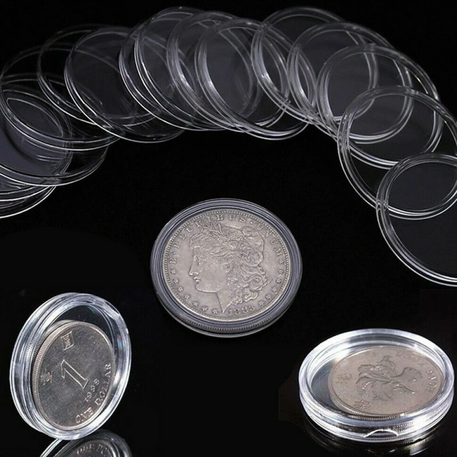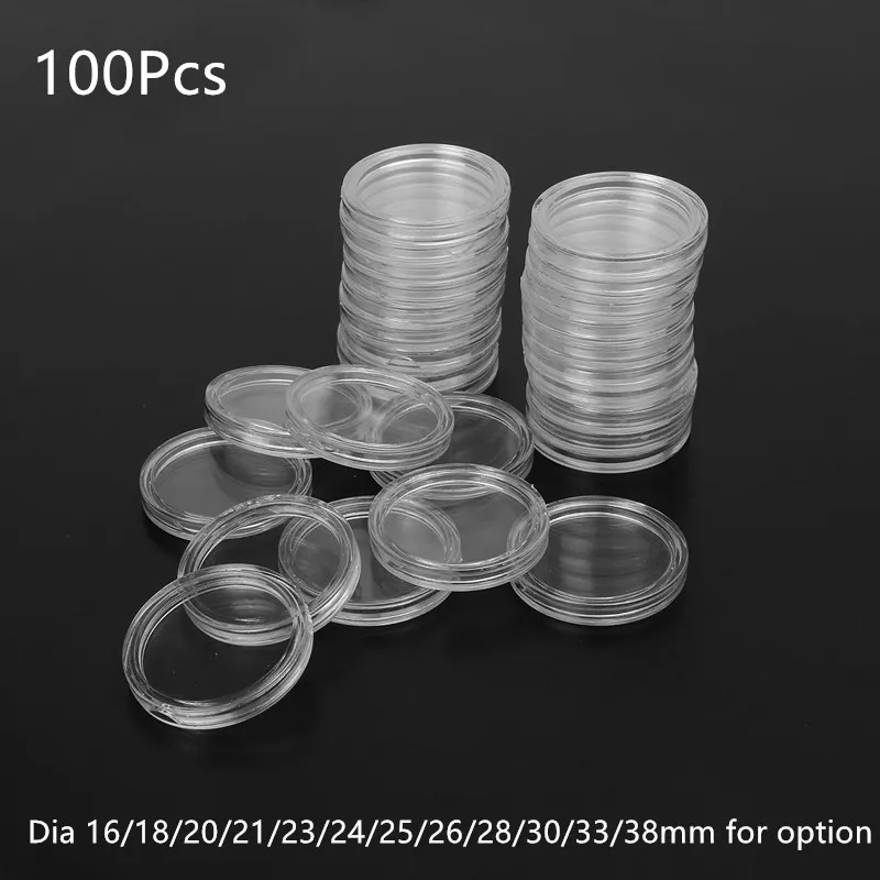 100 шт., прозрачный круглый пластиковый контейнер для хранения монет 1618202123242628303338 мм