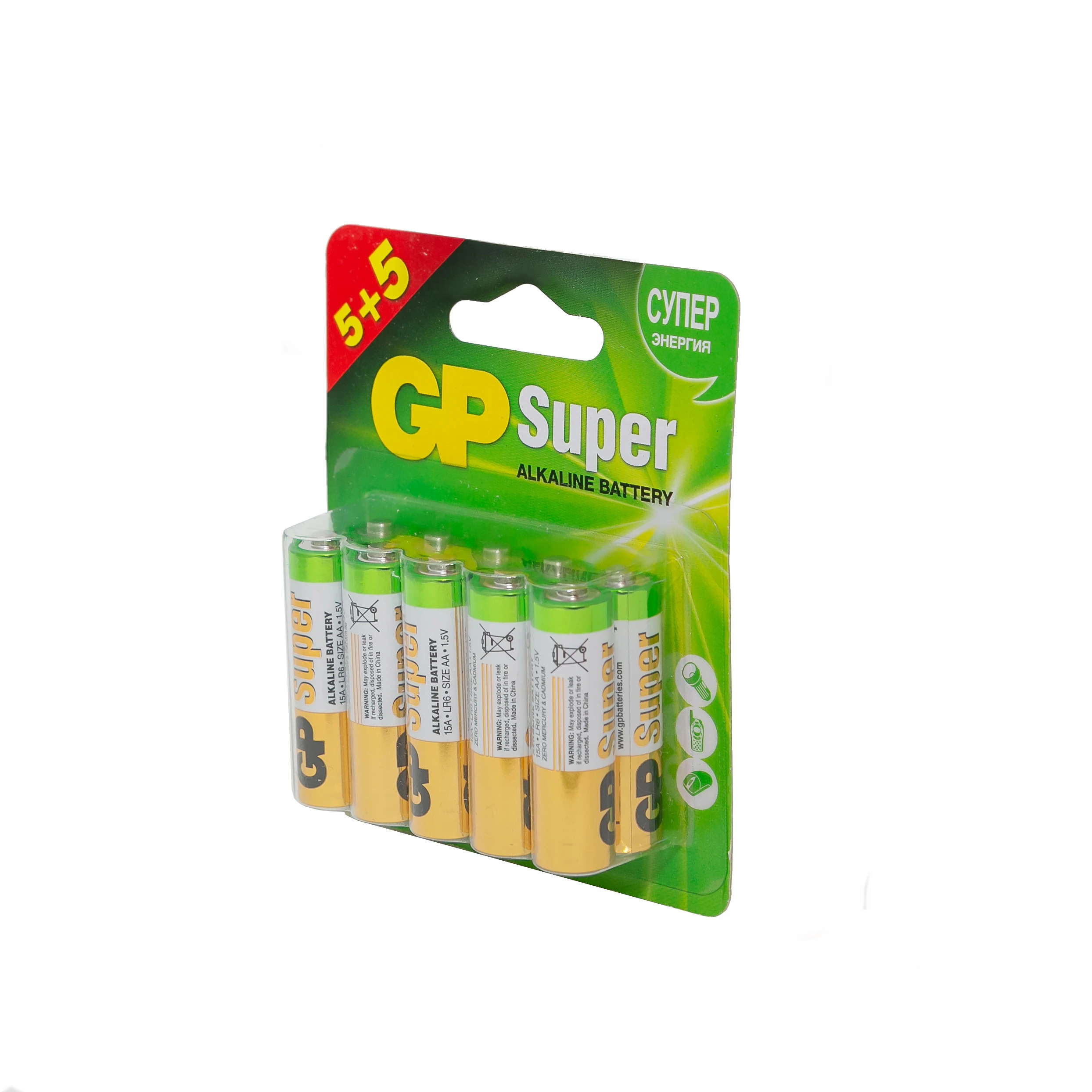 Комплект щелочных батареек АА (LR6), 10 шт, для фонарей, аудио плееров, детских игрушек, часов, весов (GP 15A55-2CR10)
