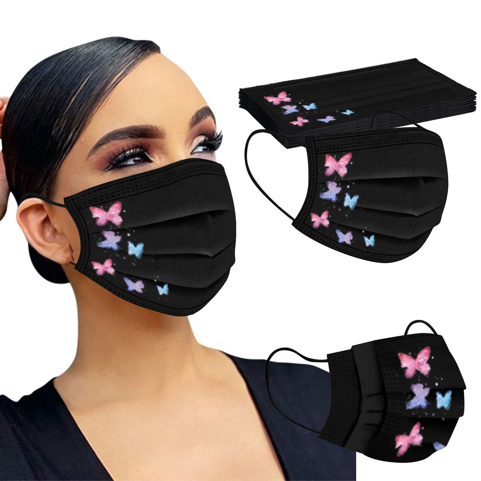 Маски Для Взрослых С Рисунком бабочки одноразовая маска для лица промышленные 3-слойные фильтры эластичные ушные петли маски для рта маски