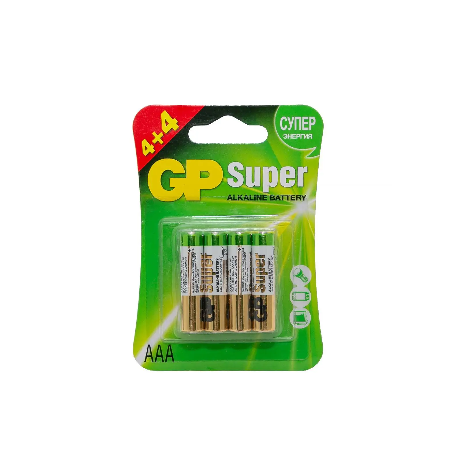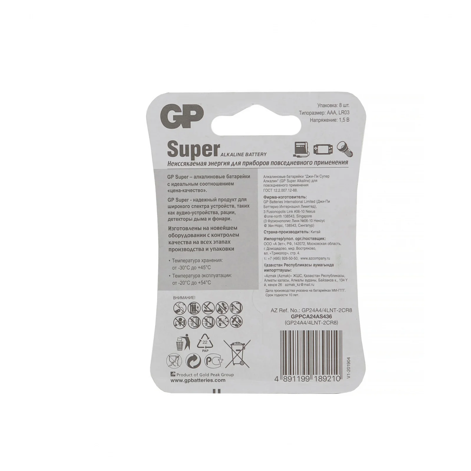 Комплект щелочных батареек ААА (LR03), 8 шт, для пультов, аудиоплееров, фонариков, гаджетов, детских игрушек (GP 24A44LNT-2CR8)