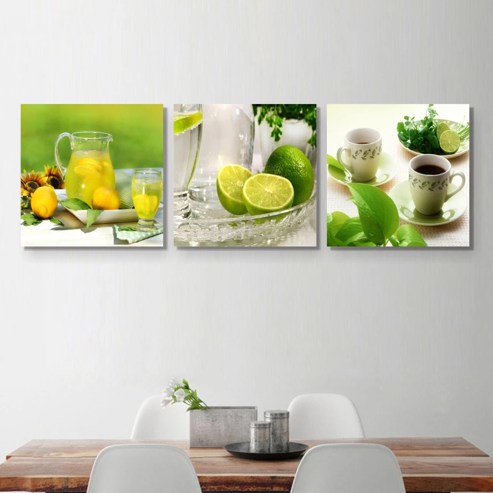 3 Панели, зеленые фрукты, лимон, кухонные плакаты, настенное искусство, холст, картины, домашний декор, аксессуары для картин для украшения гостиной