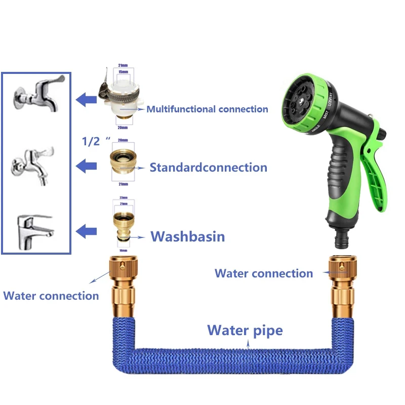 Новый садовый шланг, расширяющийся, 16-125 футов, пластиковая труба высокого давления для мойки автомобилей, волшебный гибкий водяной шланг с распылителем для полива