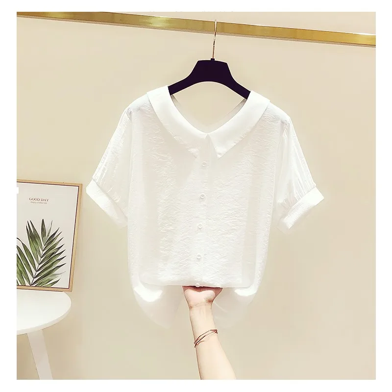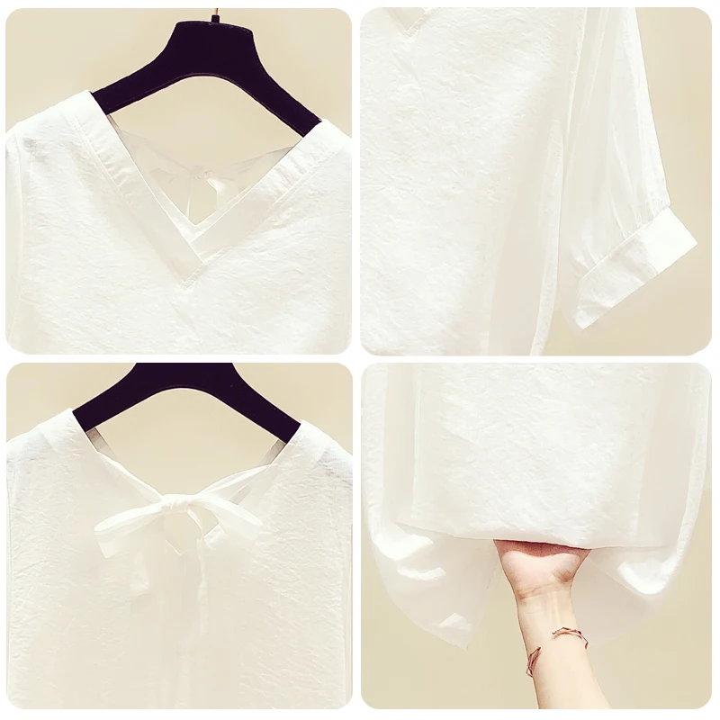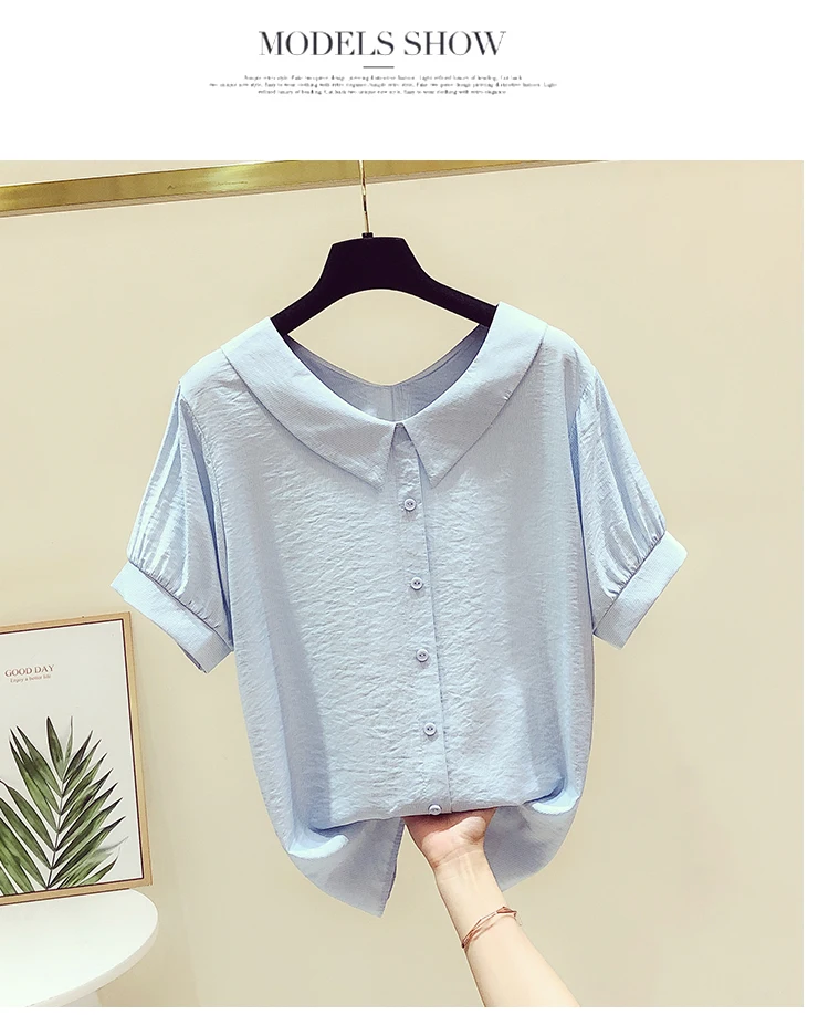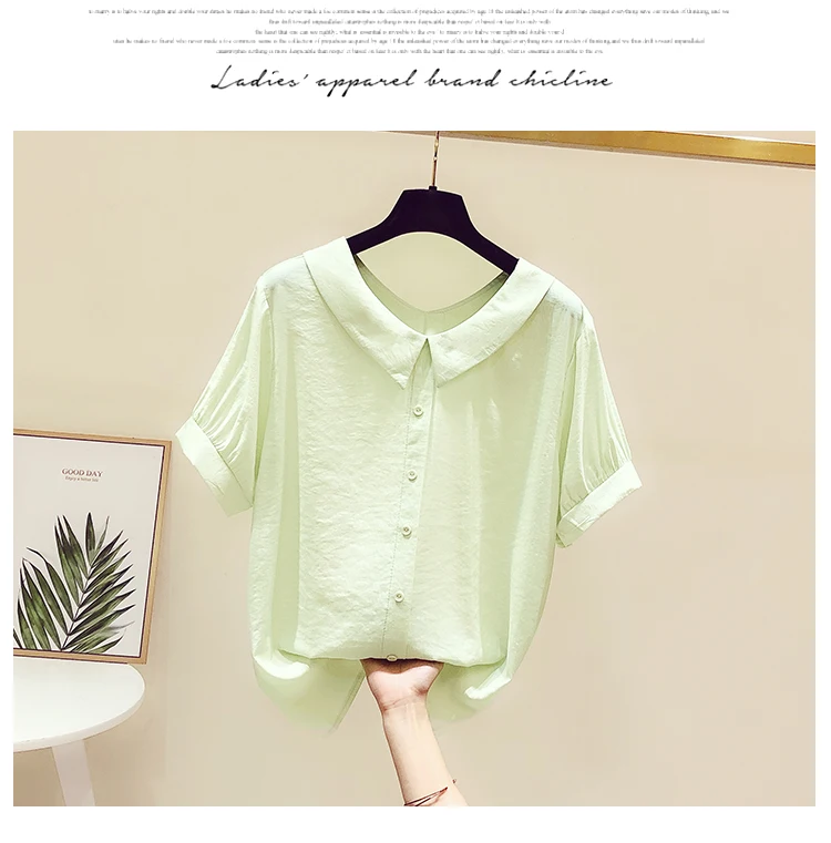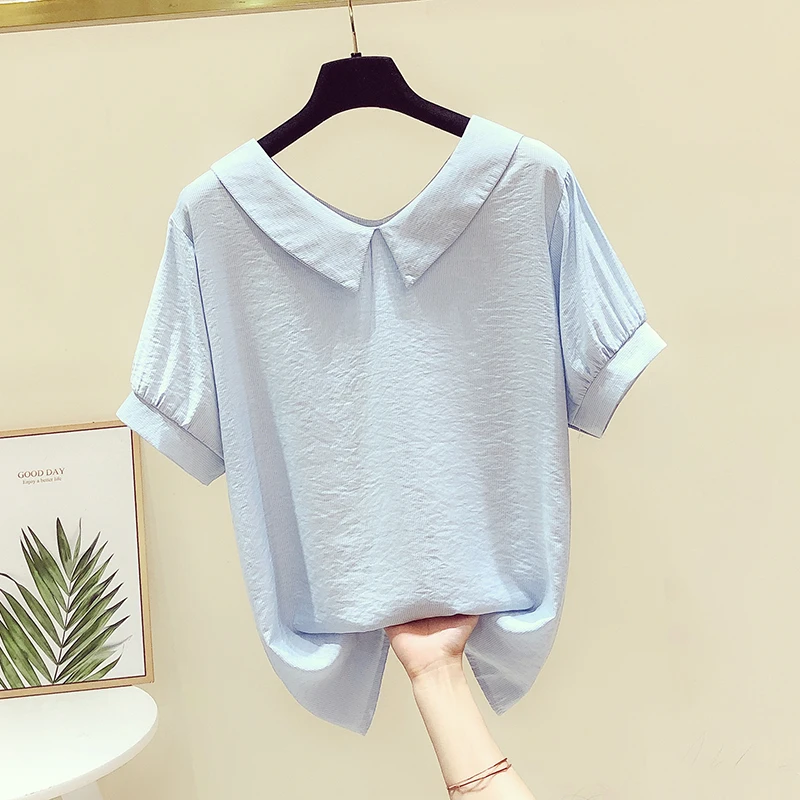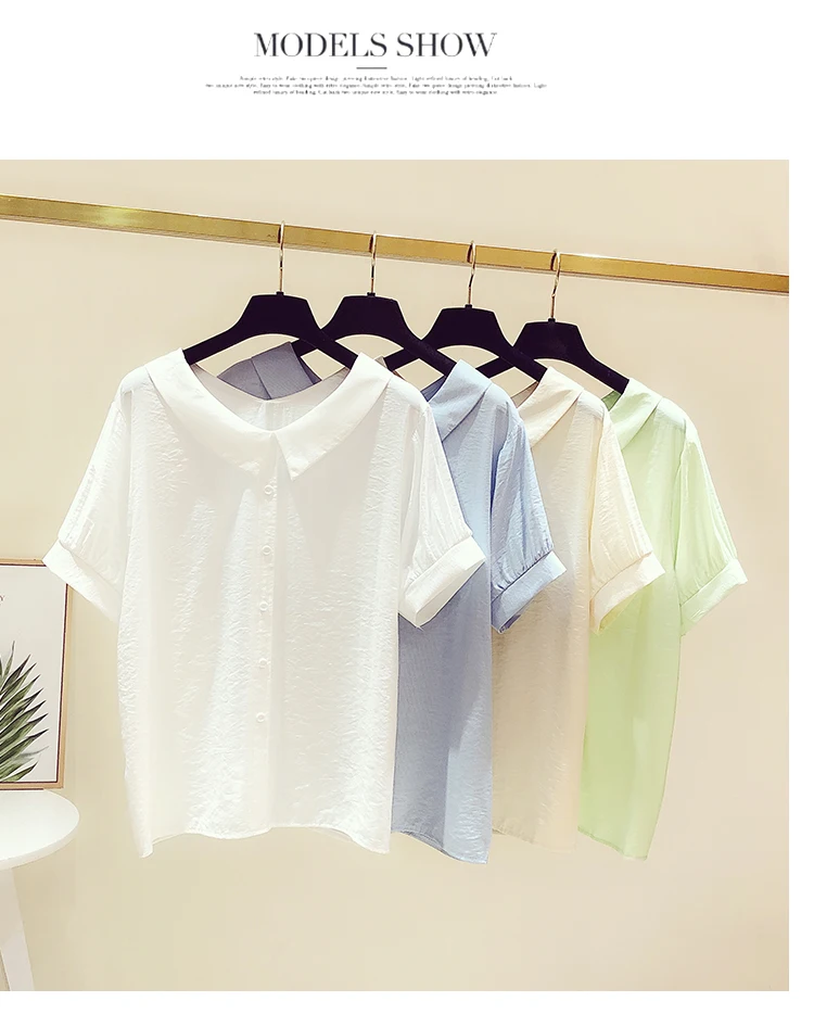 Oteele футболка женский Рубашки 2021 летом топы женские белая блузка для женщин Повседневная Футболки с коротким рукавом Сплошной цвет Женская одежда Офисные дамы рубашка