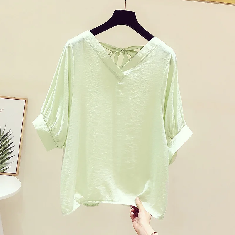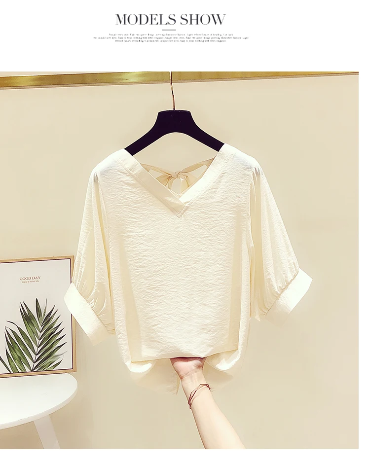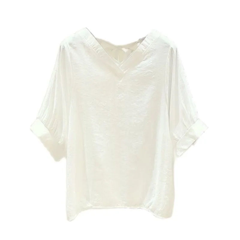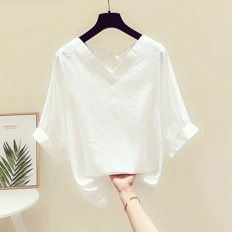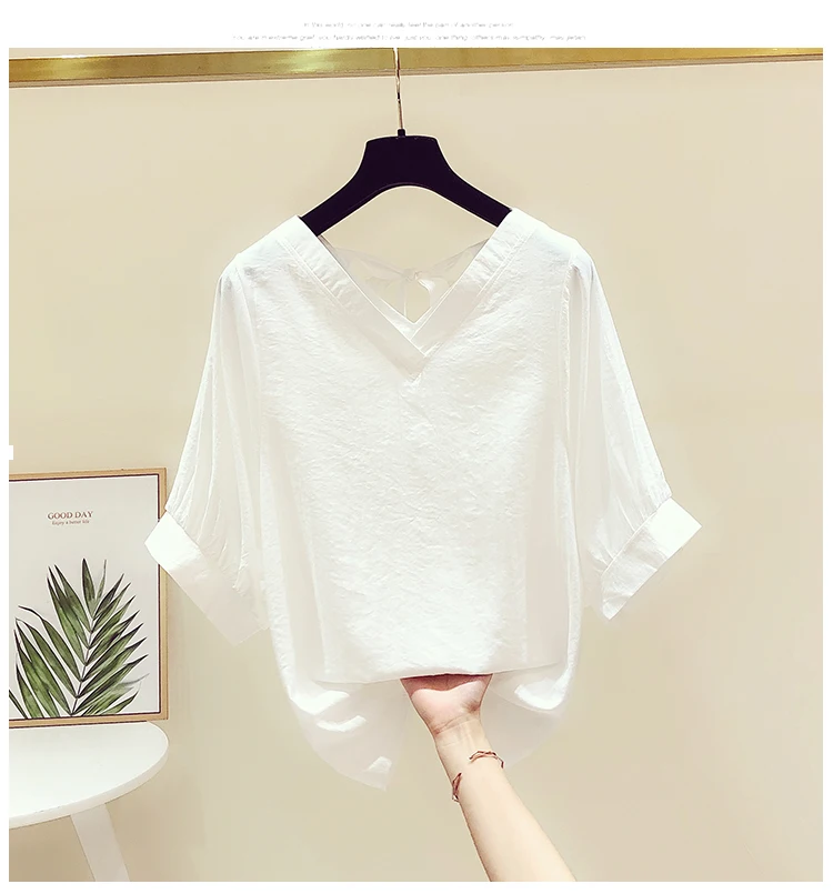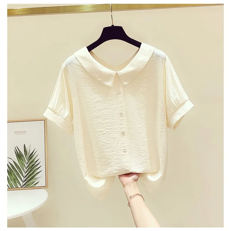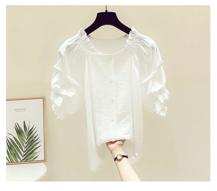 Oteele футболка женский Рубашки 2021 летом топы женские белая блузка для женщин Повседневная Футболки с коротким рукавом Сплошной цвет Женская одежда Офисные дамы рубашка