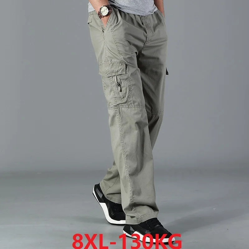 Брюки-карго мужские с карманами, свободные штаны на молнии, повседневные Простые брюки армейского зеленого цвета, прямые, серого цвета, большие размеры 8XL 10XL 13XL, на лето