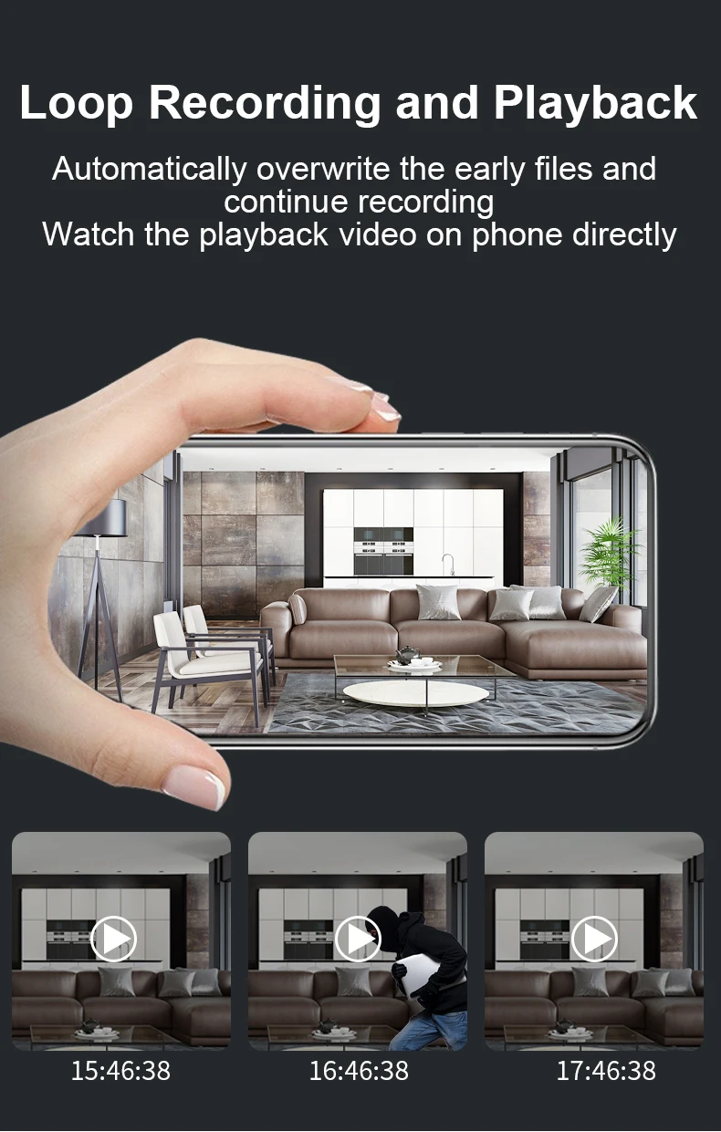 Автоматически перезаписывайте ранние файлы и продолжайте часы с записью видео воспроизведения непосредственно на телефоне
