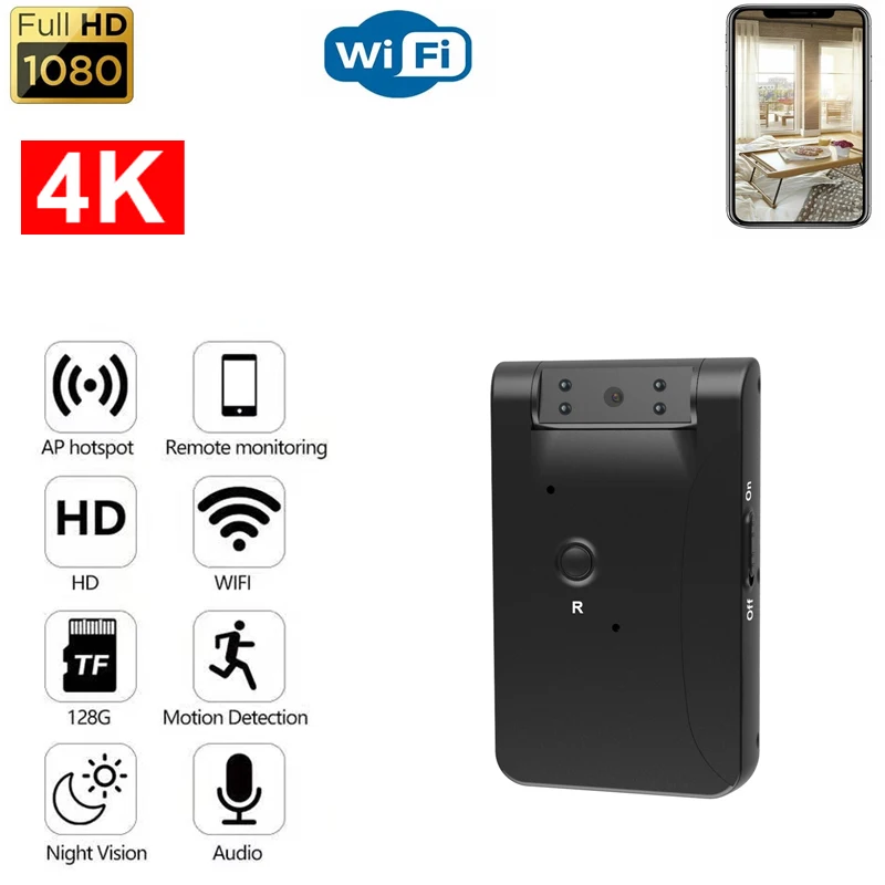 4K HD Wifi мини камера ночного видения портативный DVR 1200mah 180 ° вращающаяся Len IP камера Обнаружение движения беспроводной пульт дистанционного мониторинга