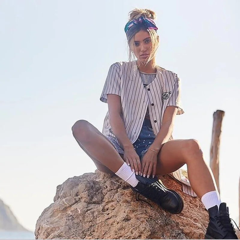Лето 2021, Европейская и американская футболка, бейсбольная форма с вышивкой, полосатая рубашка, брендовая модная летняя одежда