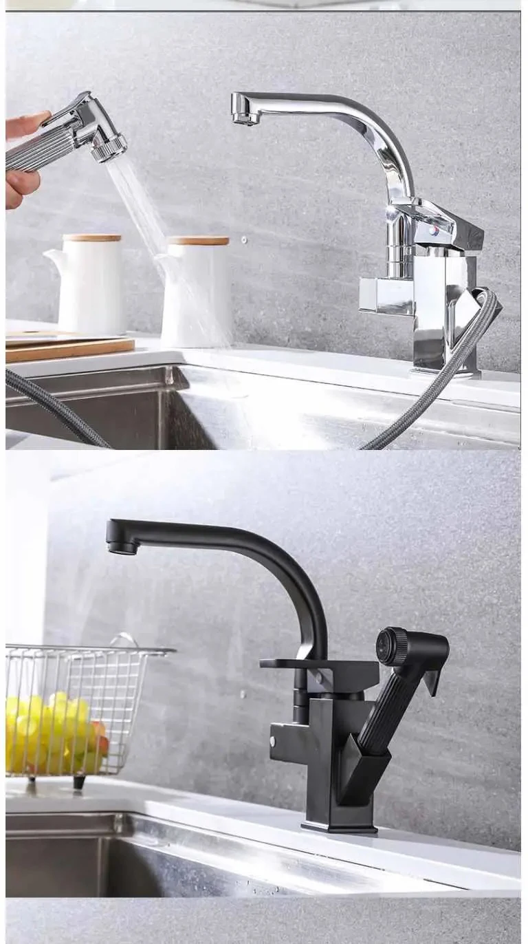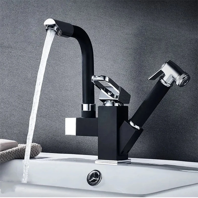 Черный кухонный выдвижной смеситель для биде спрей на палубе смеситель для горячей и холодной раковины 360 Вращающийся шарнир кран для раковины для ванной комнаты