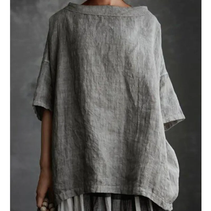2021 модная льняная женская рубашка с короткими рукавами и круглым ...