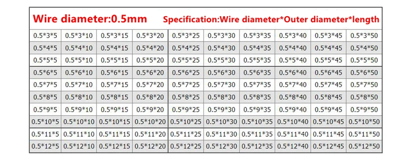 Компрессионная пружина из нержавеющей стали, диаметр проволоки 0,5 мм, 304 дюйма, наружный диаметр 3-12 мм, Длина 5-50 мм, 10 шт.