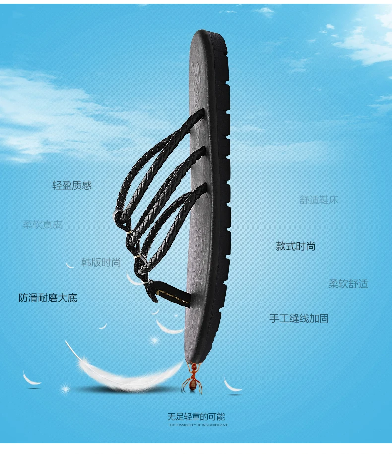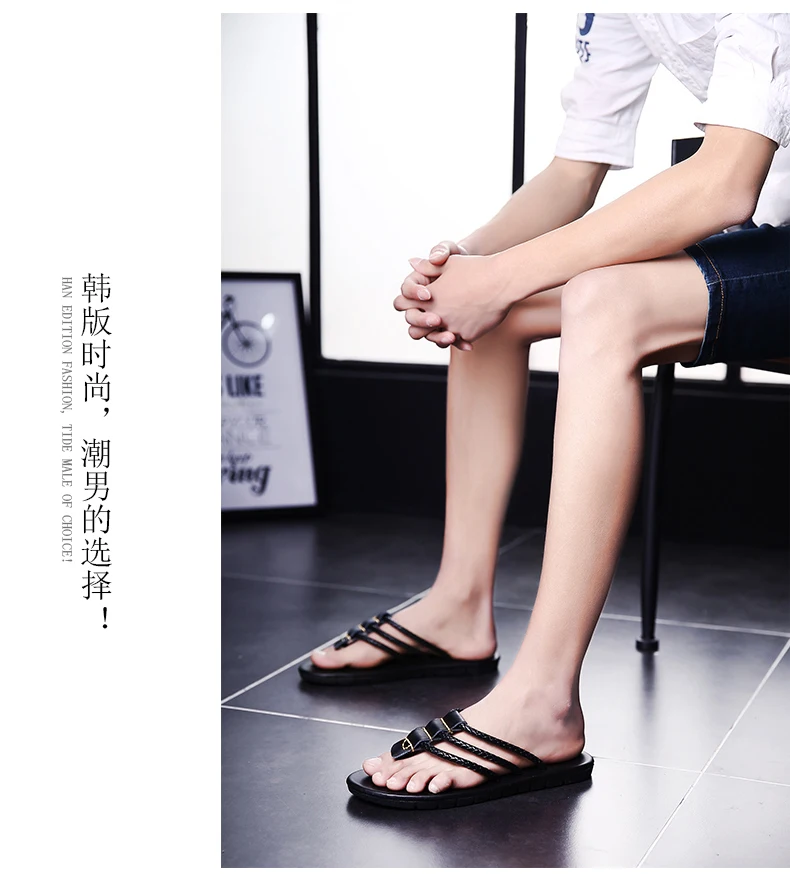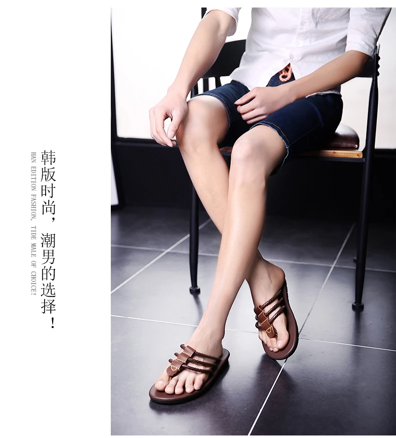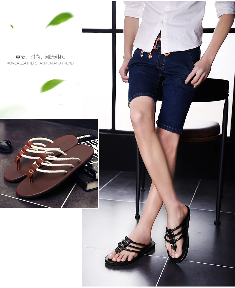 Шлепанцы мужские из натуральной кожи, пляжные сандалии, повседневна...