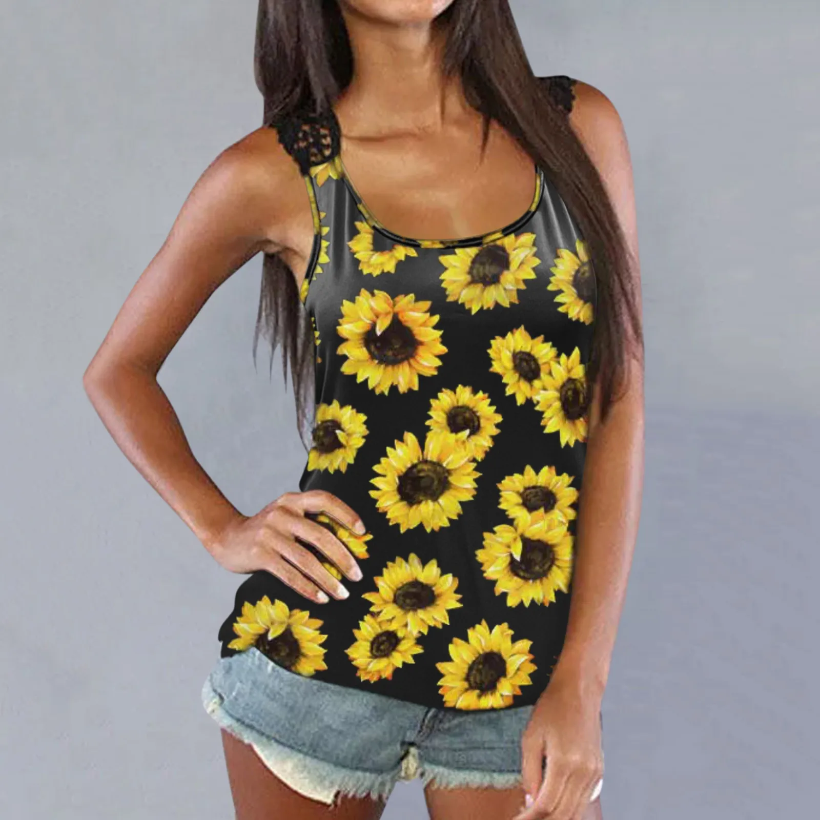 Майка женская кружевная без рукавов, модный ажурный пикантный жилет с круглым вырезом и цветочным принтом, Повседневная в стиле бохо с открытой спиной, # G1