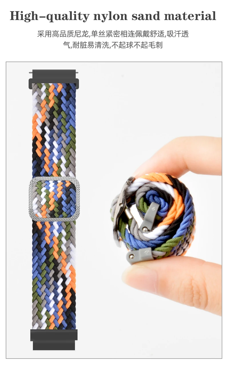 Ремешок соло Плетеный для Samsung Galaxy watch 3 active 2 46 мм 42 мм Gear S3, регулируемый браслет для Huawei GT 2 2e Pro, 20 мм 22 мм