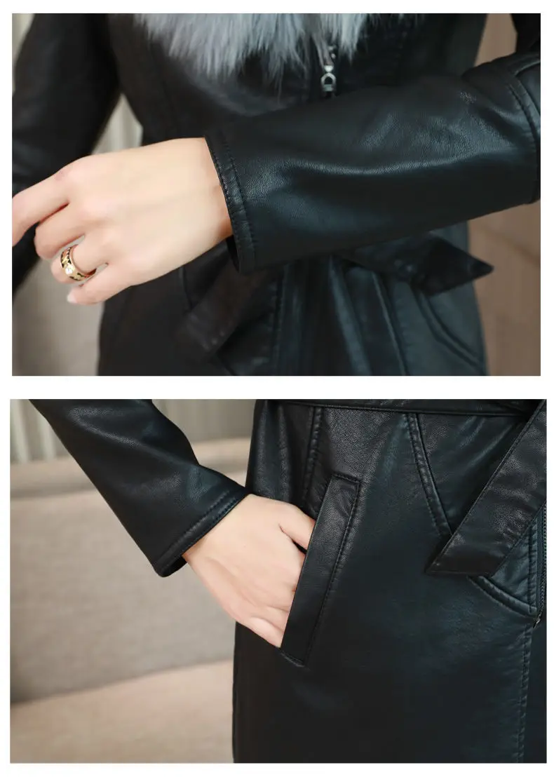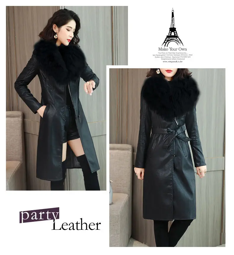 Женская зимняя куртка из 2021 кожи с хлопковой подкладкой, длинная ...