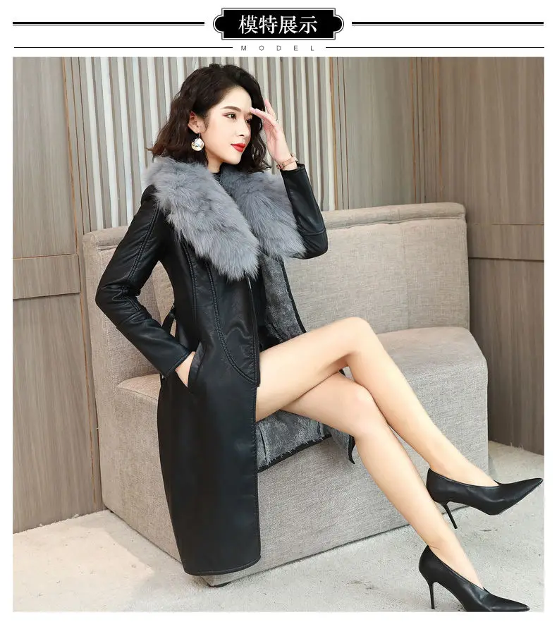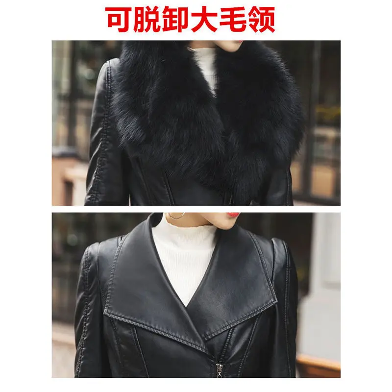 Женская кожаная куртка Sllsky на зиму 2019, новая бархатная теплая ...