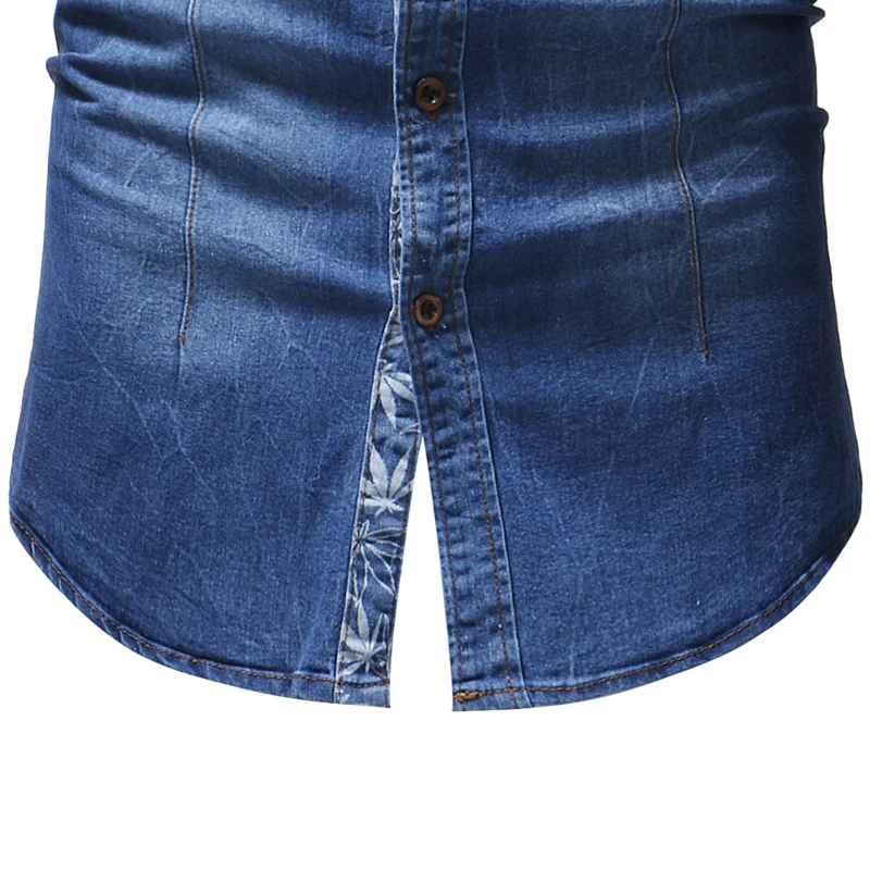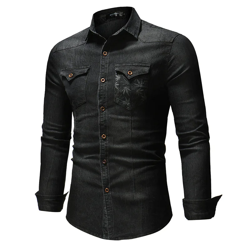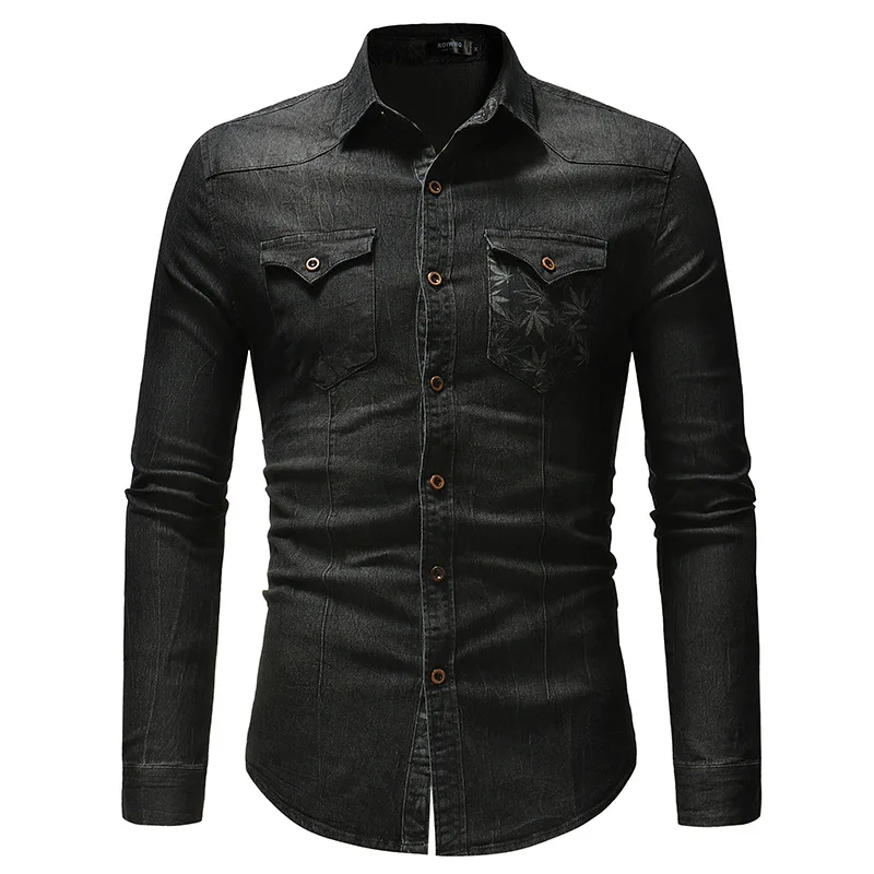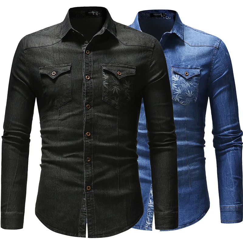 Весенне-осенняя Высококачественная джинсовая мужская повседневная приталенная рубашка с длинным рукавом и карманом черного и синего цвета размера плюс 3XL
