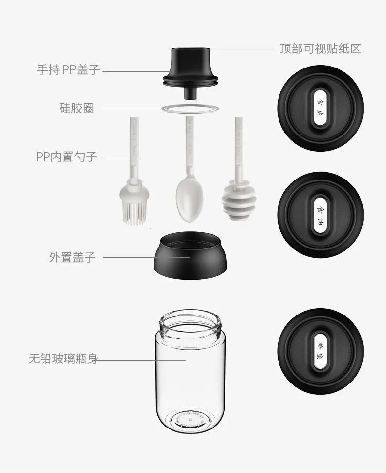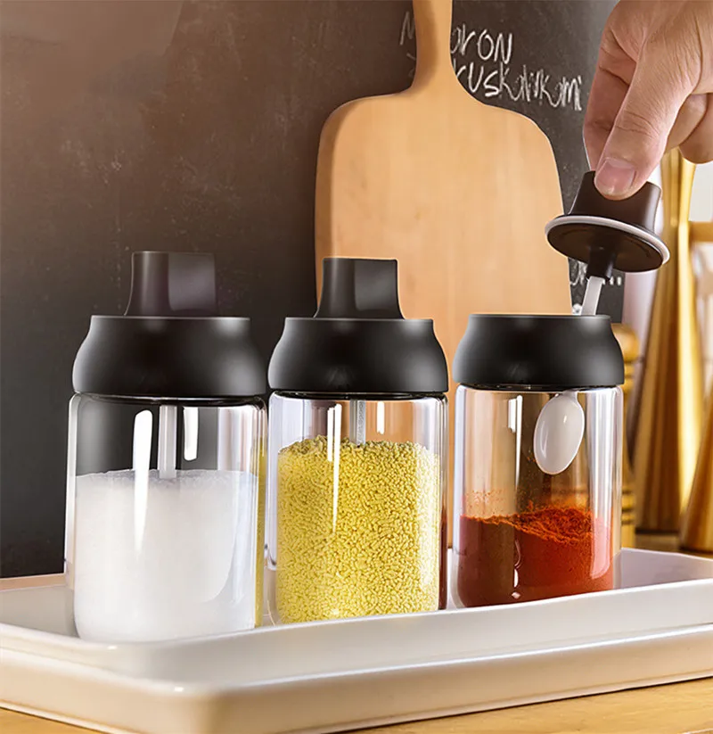 Стеклянная коробка для специй, ложка и крышка, интегрированная банка для специй, комбинированная банка для приправ, кухонные принадлежности, домашний шейкер, набор бутылок для масла