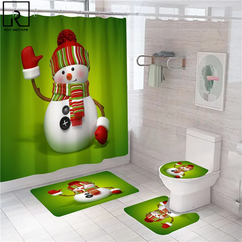 Рождественская мультяшная занавеска для душа из полиэстера с изображением снеговика занавеска из ткани занавеска для ванной праздничный Декор набор ковриков для ванной аксессуары для туалета